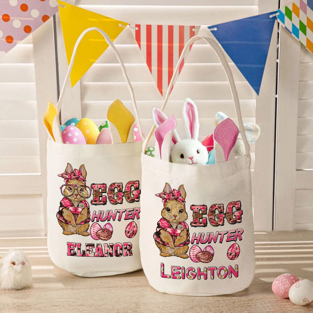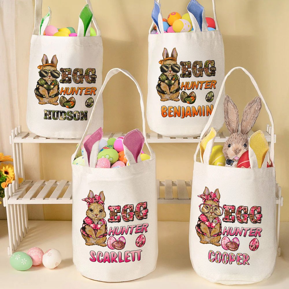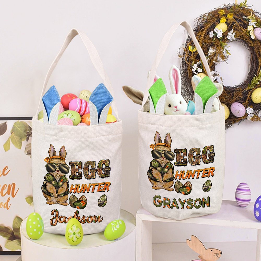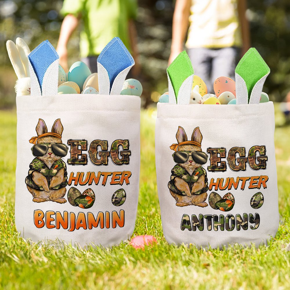 Personalised Camouflage Bunny Egg Hunter Bucket Bag with Name Easter Party Hunt Basket Holiday Birthday Gift for Boys Girls