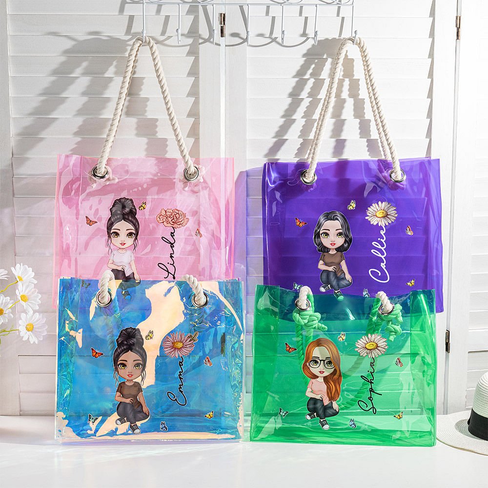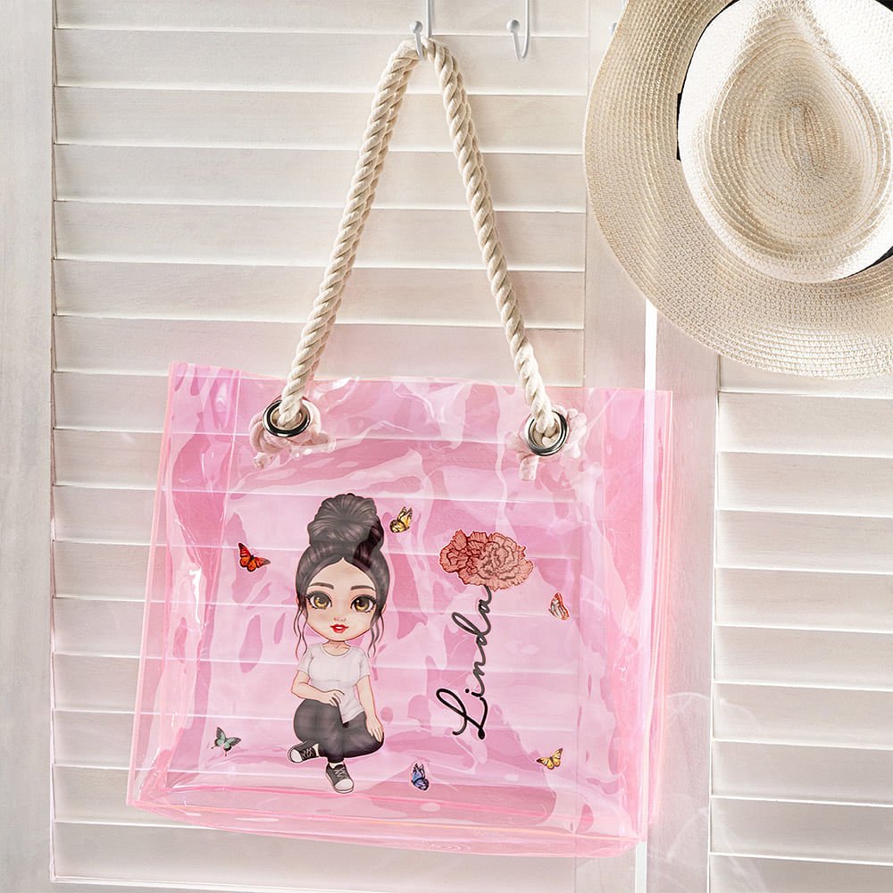 Our tote bag stands out with its unique transparent design, which can show a charming neon glow in the sun or light, adding a touch of fashion and fun to your daily carry. We offer a variety of preset cartoon characters and birth flower patterns for you to choose from, to meet your individual needs and show your unique taste. Customizable name design makes your bag even more unique.