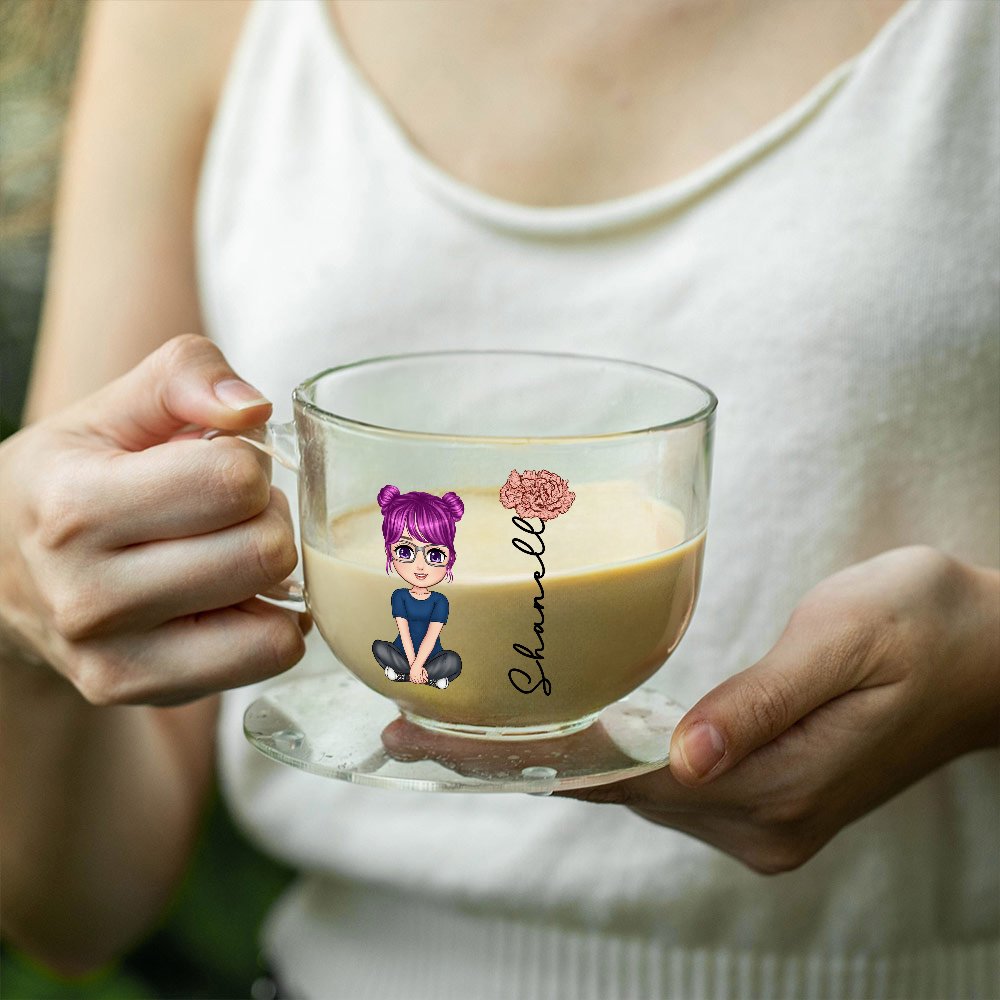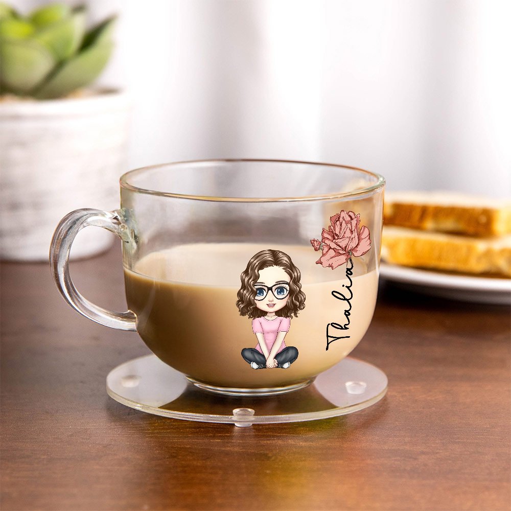 The cup's clear glass is of top-notch quality. It's sturdy enough to withstand daily use yet delicate enough to showcase the beauty of the printed designs. You can enjoy your hot coffee or tea without worrying about the glass cracking or losing its luster. The acrylic coaster is equally impressive. It's durable, resistant to scratches, and does an excellent job of protecting your tables from water rings and heat marks.
