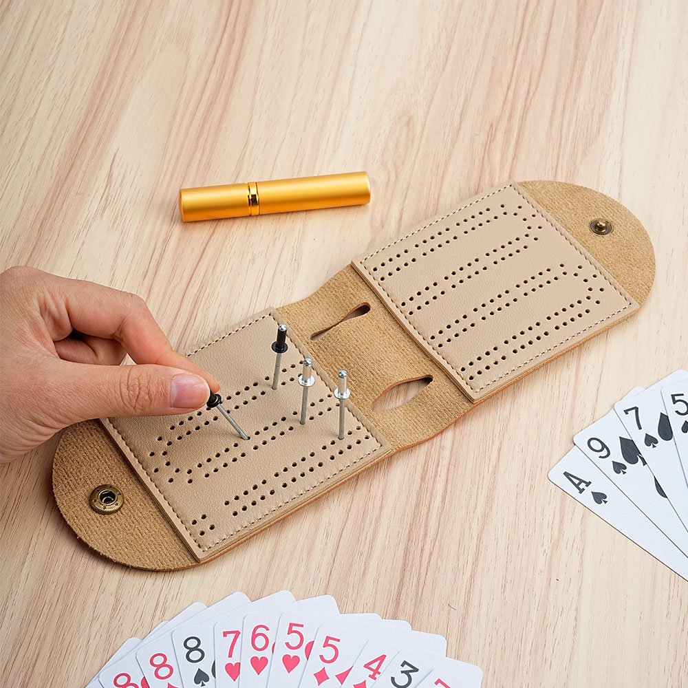 Made of high-quality premium leather and metal accessories, it is durable and waterproof, easy to store, and compact in design. It ensures that your items remain safe and dry. It has a built-in portable Cribbage chessboard, matching metal chess pieces, and storage tubes.