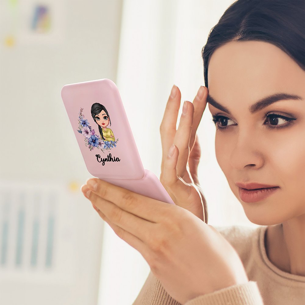 Offering customization options for cartoon characters, birth flowers, and names, this Personalised portable double-sided makeup mirror allows you to create a one-of-a-kind accessory. Choose from four stylish colors to perfectly fit your style and preferences. Whether you're running between meetings, traveling the world, or just need to look in the mirror during the day, it's all within reach.