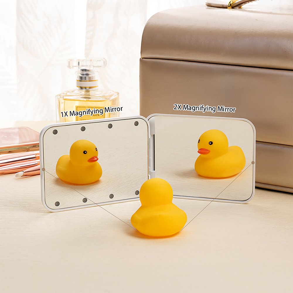 Feature: LED Light, Double-Sided Mirror with One Side Magnifying Effect, Birth Flower & Cartoon Character Design