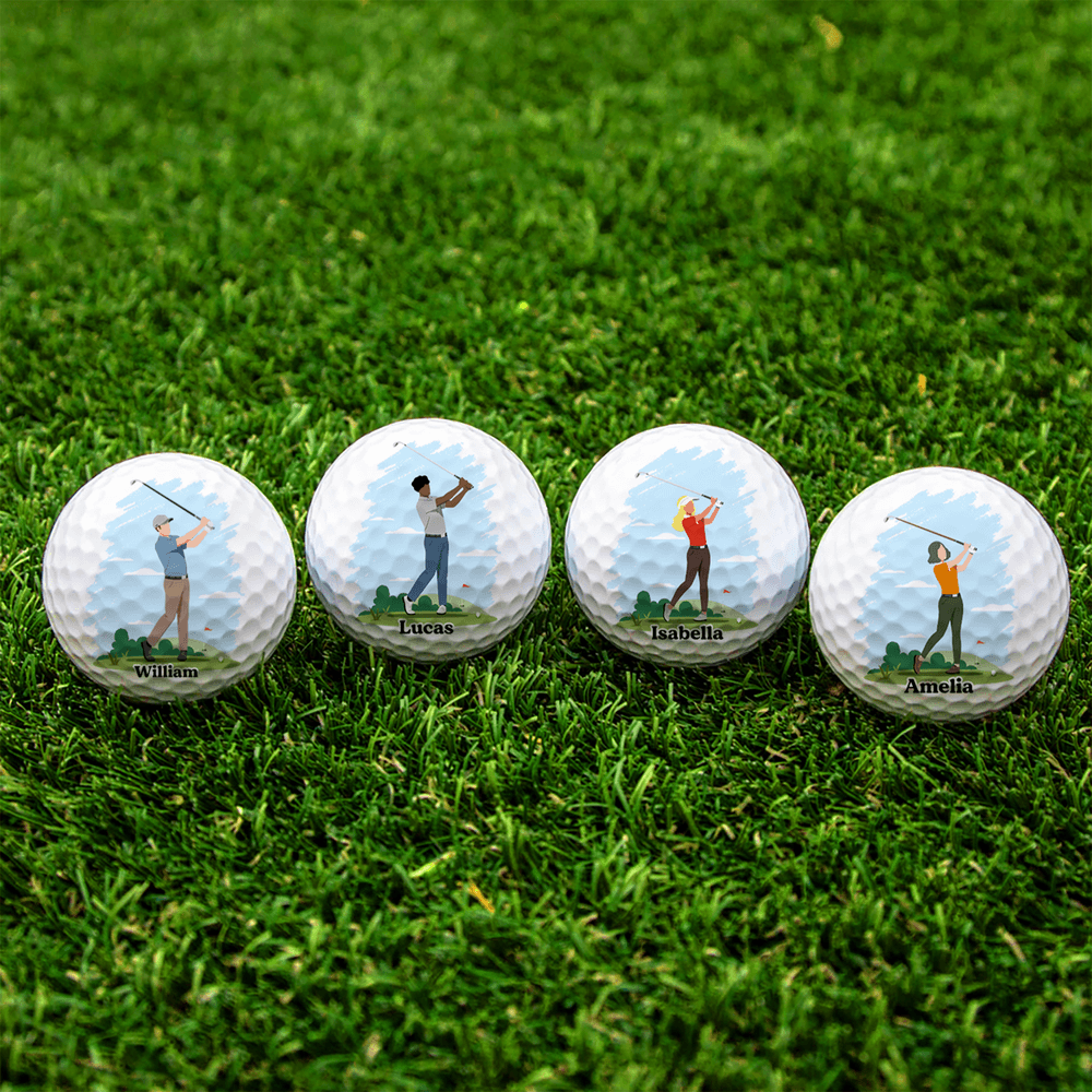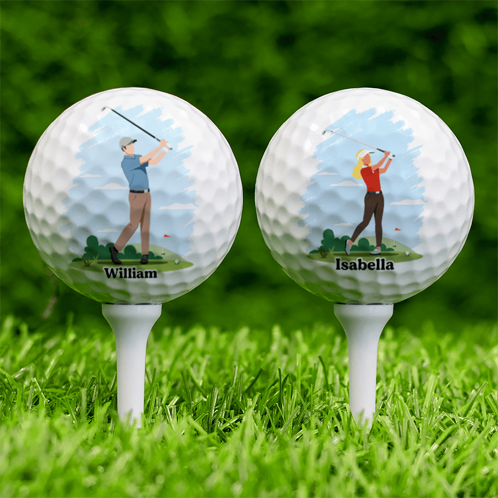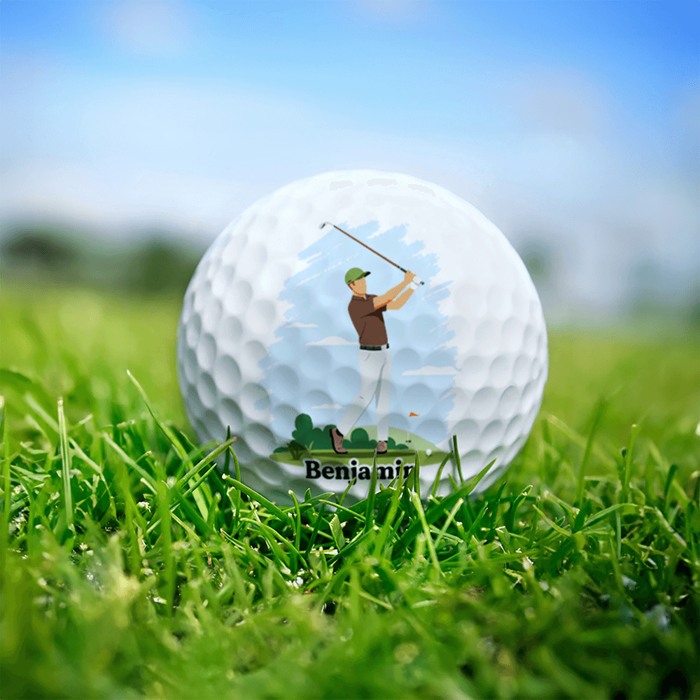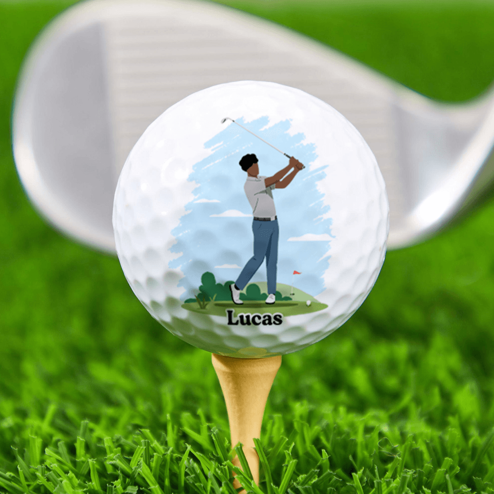 This unique golf ball features a customizable design, offering a minimalist cartoon illustration of a golfer in male/female styles, paired with a printed name. The design blends playful, sporty charm with personal flair—turning a standard golf ball into a one-of-a-kind accessory that reflects the user’s identity on the course.