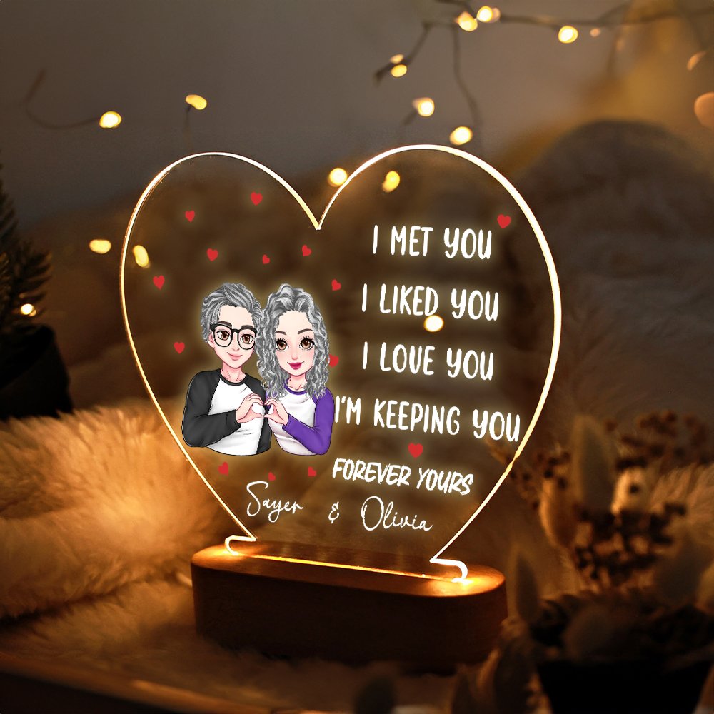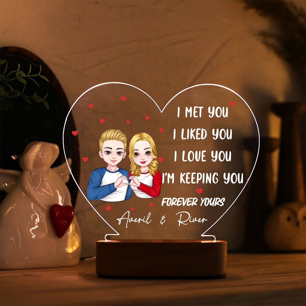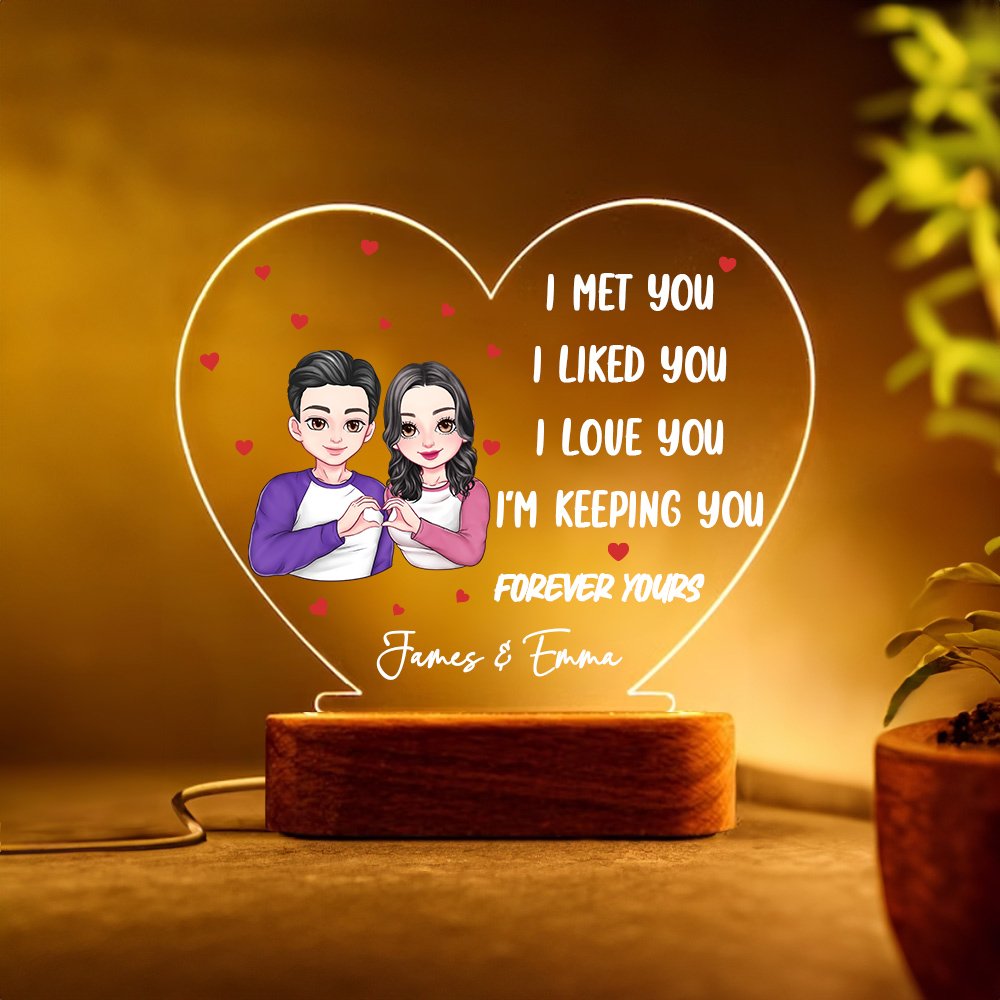 This night light uses a unique heart-to-heart gesture pattern, symbolizing the intimate connection between lovers, not part of the emotion. The cartoon characters on the night light are cute and kind, and the Personalised names and romantic words on the background add emotional depth, making this night light not only a decoration but also a symbol of love.