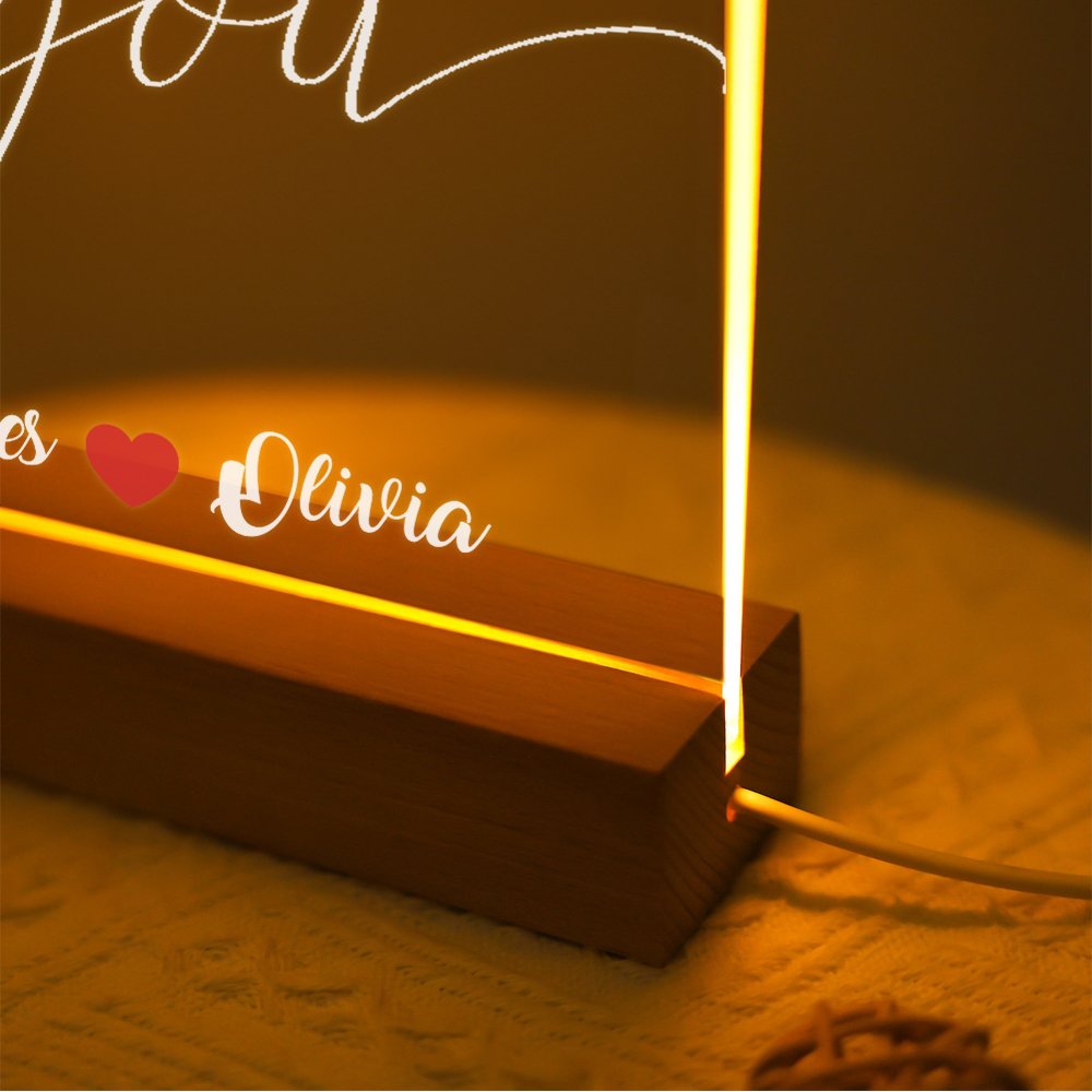 The night light depicts a couple's passionate embrace. The two people in the painting hug each other tightly, giving people a warm feeling. The Personalised name and romantic text on the night light add emotional depth, making this night light not only a decoration but also a symbol of love.