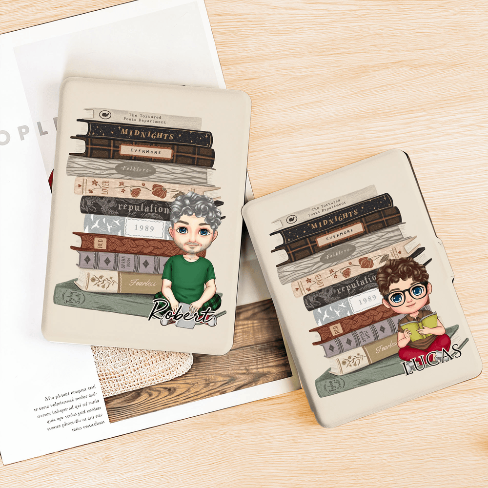 Personalised Cartoon Character Retro Books Portable Kindle Case with Name Daily Use Birthday Gift for Book Lovers Bookworms