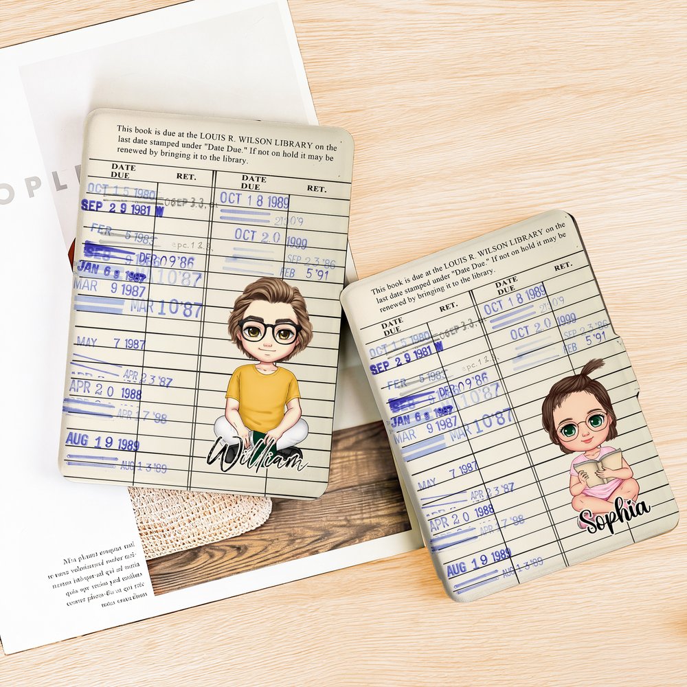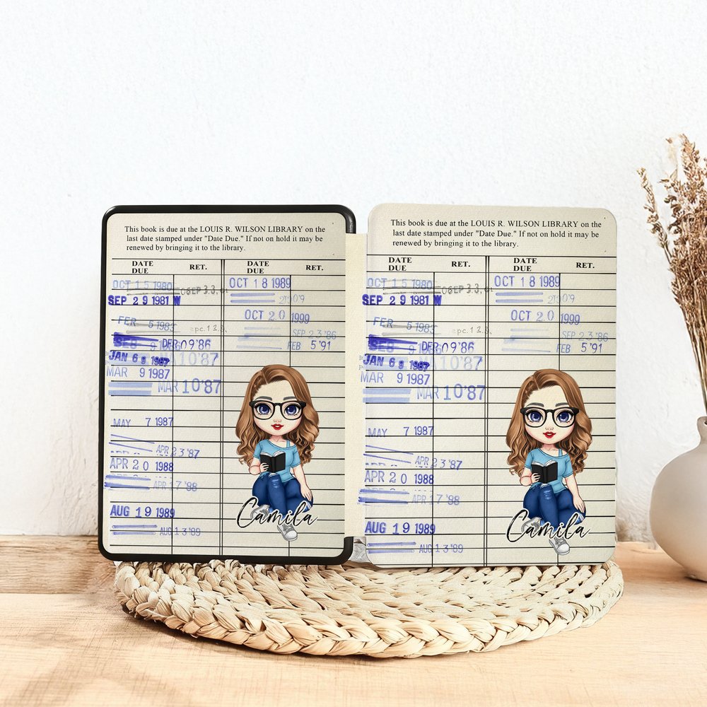 The case features a vintage library card as the backdrop, complemented by a vibrant cartoon character reading, creating a vibrant, artistic atmosphere. A customizable name is also available, making the case a true tribute to traditional reading while also being Personalised. Wearing it over your e-reader effortlessly showcases your love of reading and unique aesthetic.