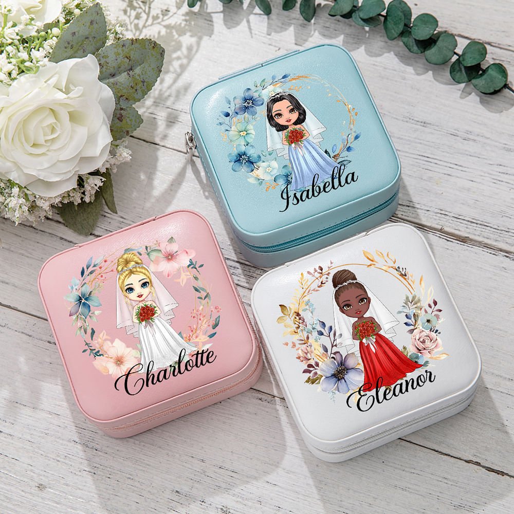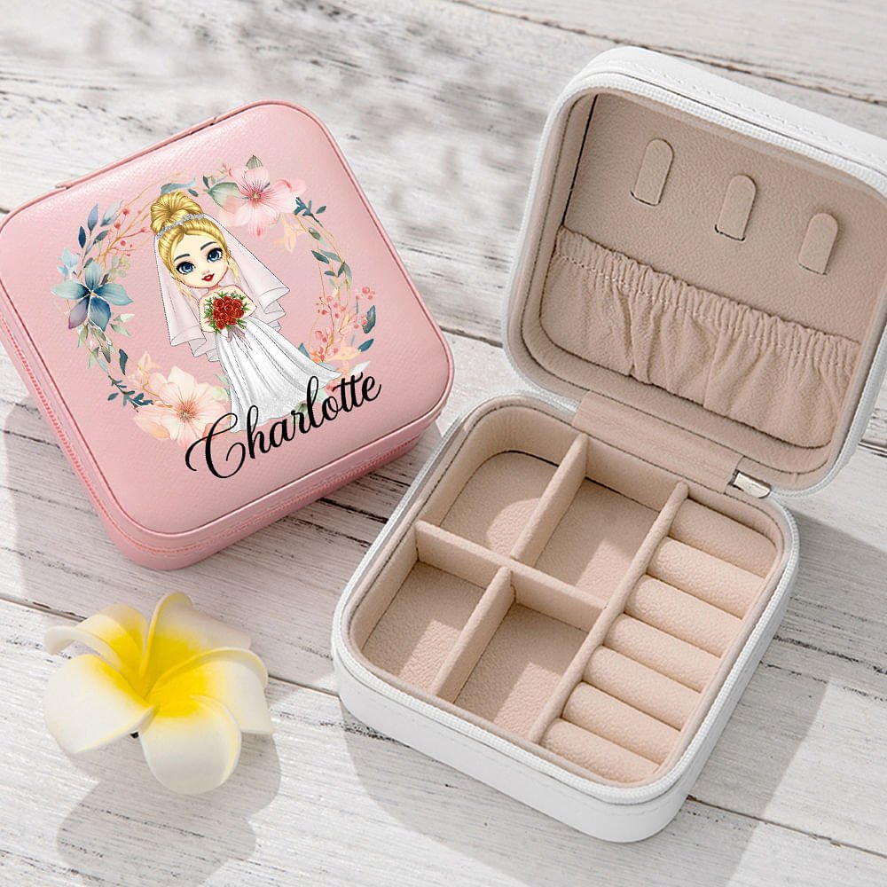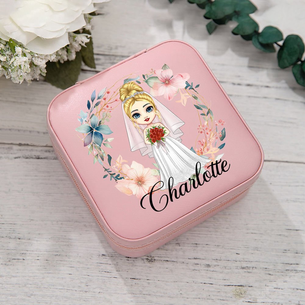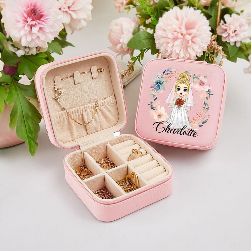 The unique design of our jewellery box adopts the elements of a woven wreath. You can choose an elegant bride or a beautiful bridesmaid in the wreath to create a romantic and perfect style. You can add your name to it to make a unique gift.