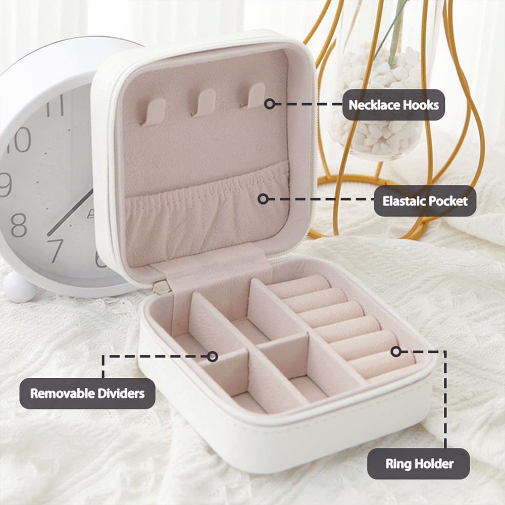 Our jewellery box is compact enough to carry in a suitcase without sacrificing the integrity of the jewellery. This box can accommodate several rings, earrings, and delicate bracelets or necklaces. The box has a mezzanine and multiple compartments to keep the jewellery organized and prevent it from getting tangled easily. It is easy to carry and lightweight, so it is a perfect companion for weddings and honeymoons.
