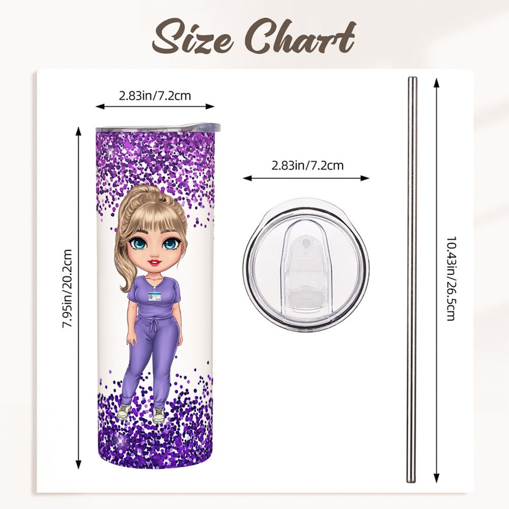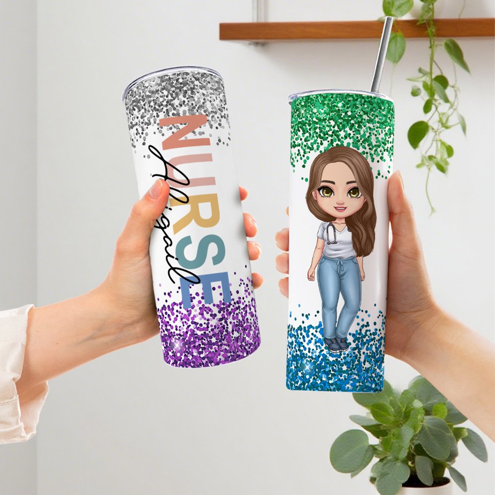 This tumbler features cartoon doctors and nurses, customizable with titles, names, and glitter patterns. Its overall style embodies the unique characteristics of the medical profession while also exuding a refined aesthetic. These customizable elements convey a clear recognition of medical professionals, transforming the tumbler into a Personalised piece that reflects professional honor and respect, creating both aesthetic appeal and commemorative value.β
