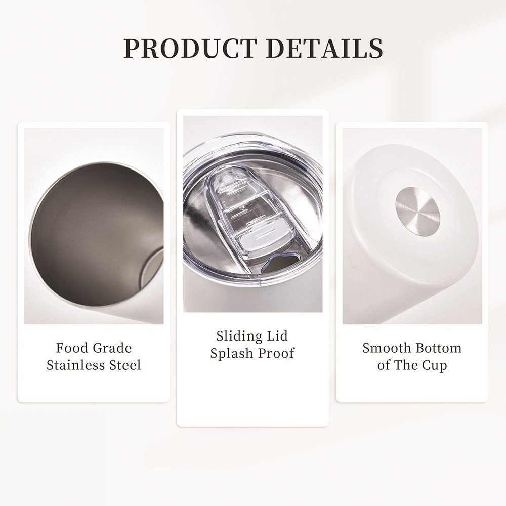 Our tumblers are crafted from high-quality food-grade 304 stainless steel, ensuring they stand the test of time. Whether sipping refreshing tea or hot coffee, this tumbler keeps your drink at the perfect temperature. The bottom of the tumbler is flat and can be placed smoothly on the table, etc.