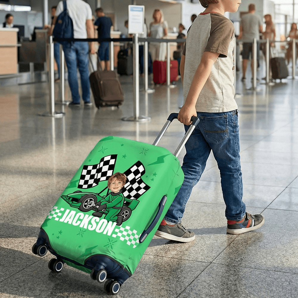A Personalised luggage cover designed for racing enthusiasts. Ideal as a birthday or holiday gift for racing-loving family and friends, it combines practical use with meaningful keepsake value, adding a personal touch of speed and excitement to every trip.