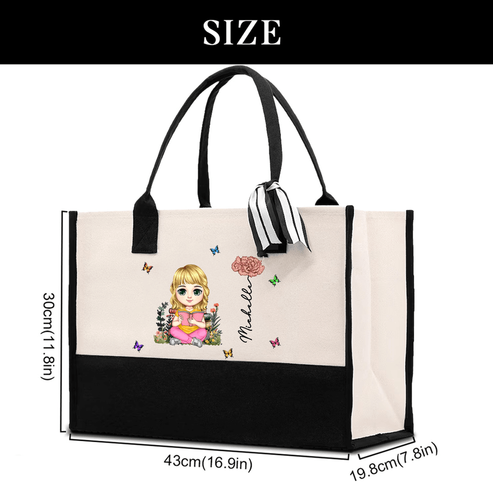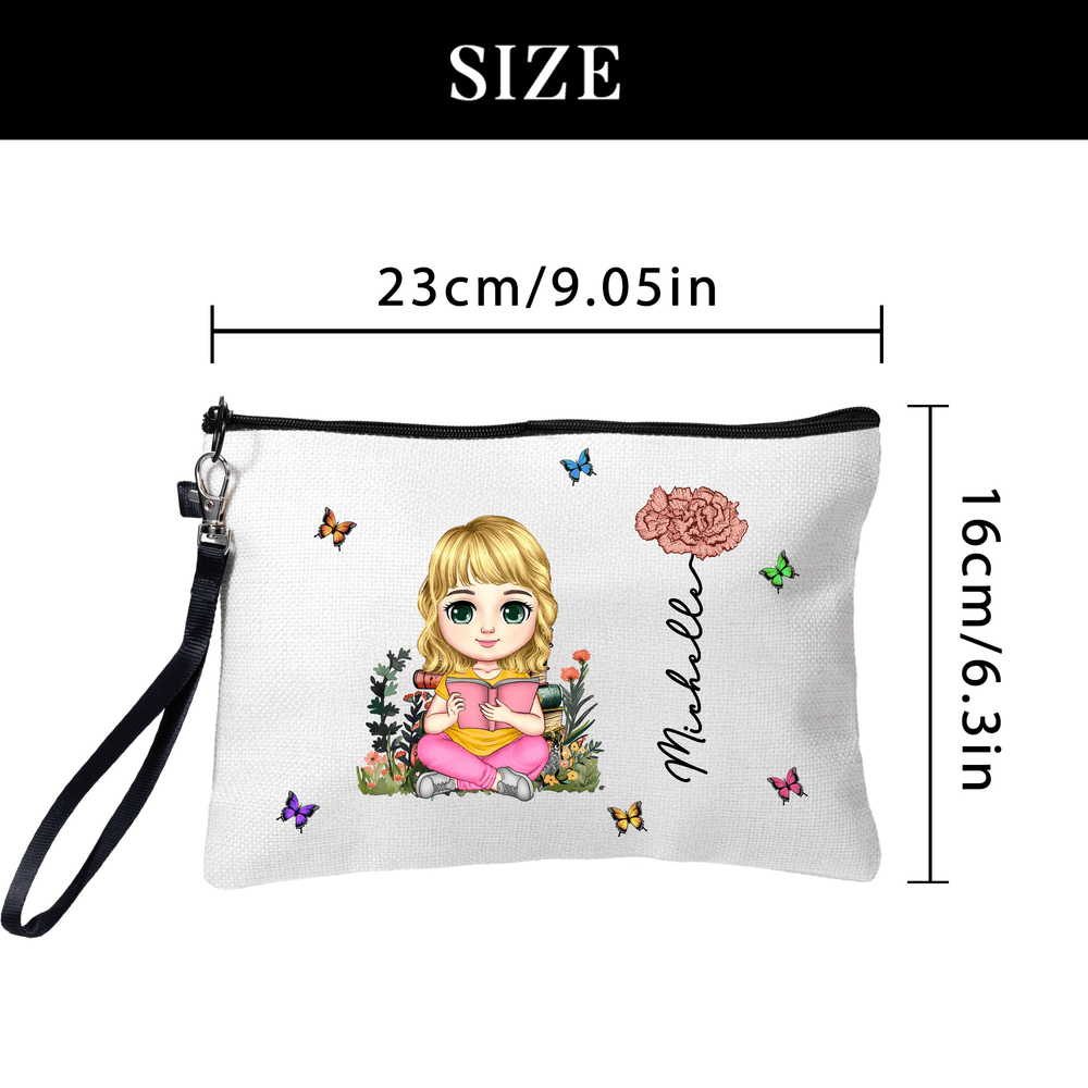 This adorable tote and makeup bag set features a cute cartoon character design, centered around customizable birth flowers. You can choose from twelve different birth flowers and Personalise them with your name. This charming combination blends minimalist style with personal expression, creating a warm and distinctive accessory that exudes understated elegance and a sense of exclusivity.