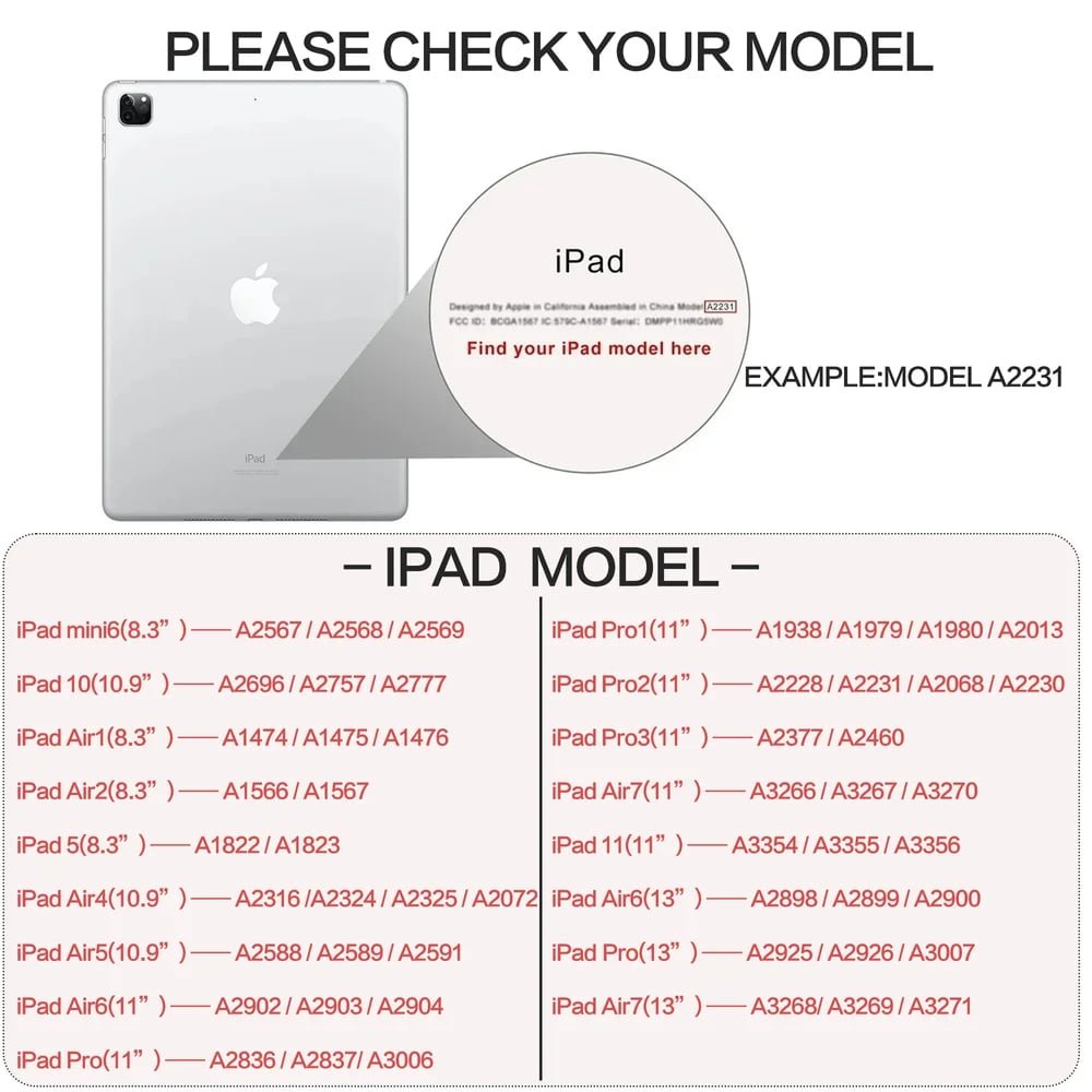 Measurement: S - iPad Mini 6 - 8.3" M - iPad 10 - 10.9", iPad Air 1/2 / iPad 5/6 - 9.7", iPad Air 4/5 - 10.9", iPad 2024 Air 6 - 11", iPad Pro 2024 - 11", iPad Pro 2018/2020/2021 - 11", iPad 2025 Air 7 - 11", iPad 11 - 10.9" L - iPad 2024 Air 6 - 13", iPad Pro 2024 - 13", iPad 2025 Air 7 - 13"