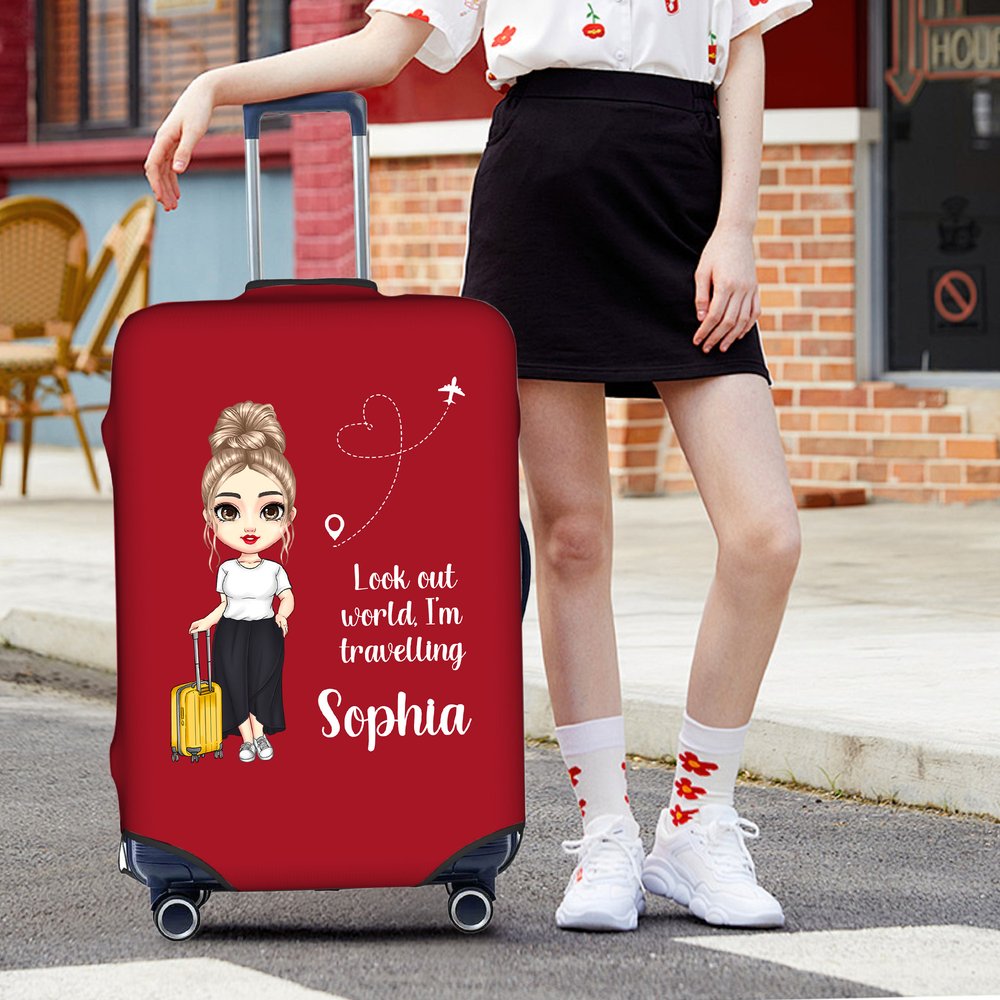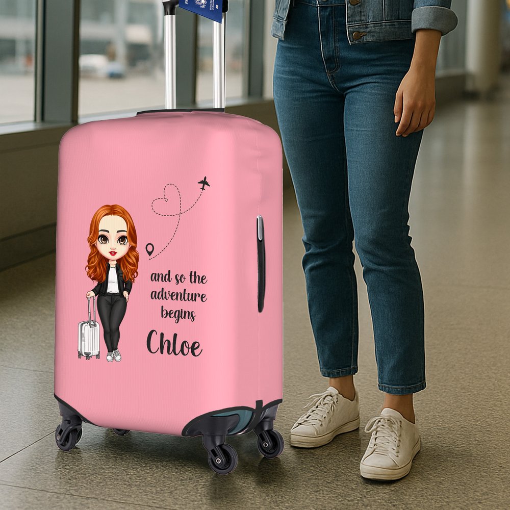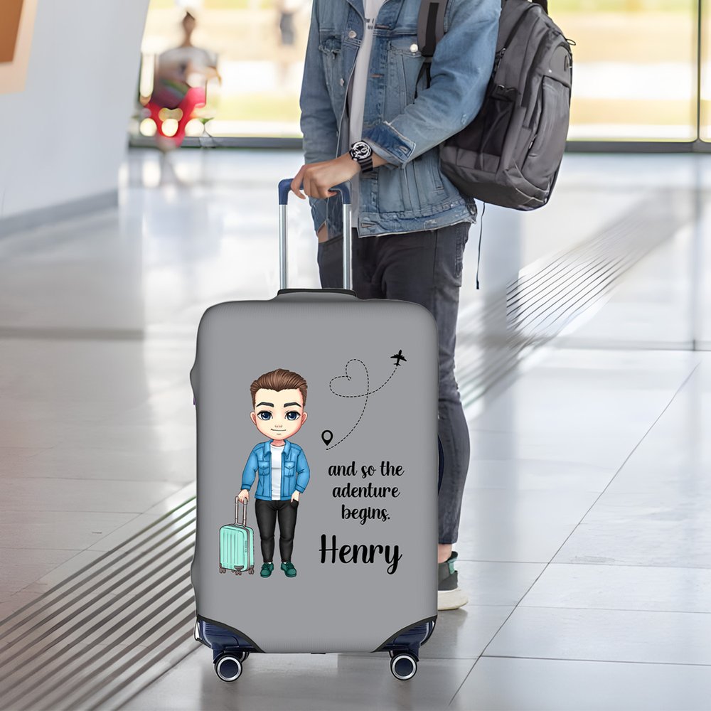 Personalised Cartoon Travel Character Love Airline 18-32 Inches Luggage Cover with Name Travel Accessories Birthday Holiday Gift for Friends