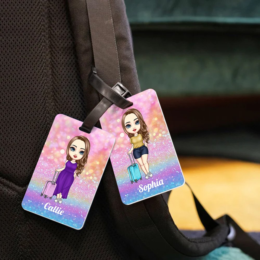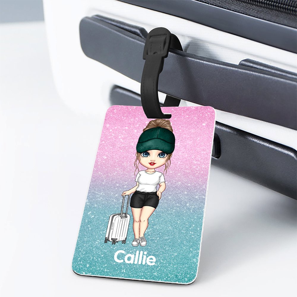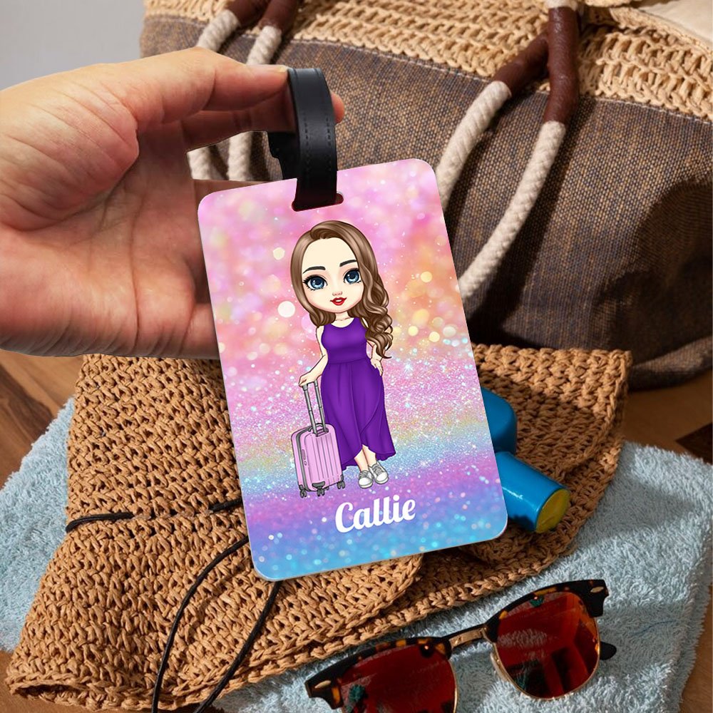 This luggage tag features a delightful cartoon woman character, which can be customized with the recipient's name, adding a unique and personal touch to their travel accessories. Matching with 25 kinds of sparkling glitter as a background enhances its aesthetic appeal and makes it easy to spot on baggage carousels, ensuring your luggage stands out during travels.