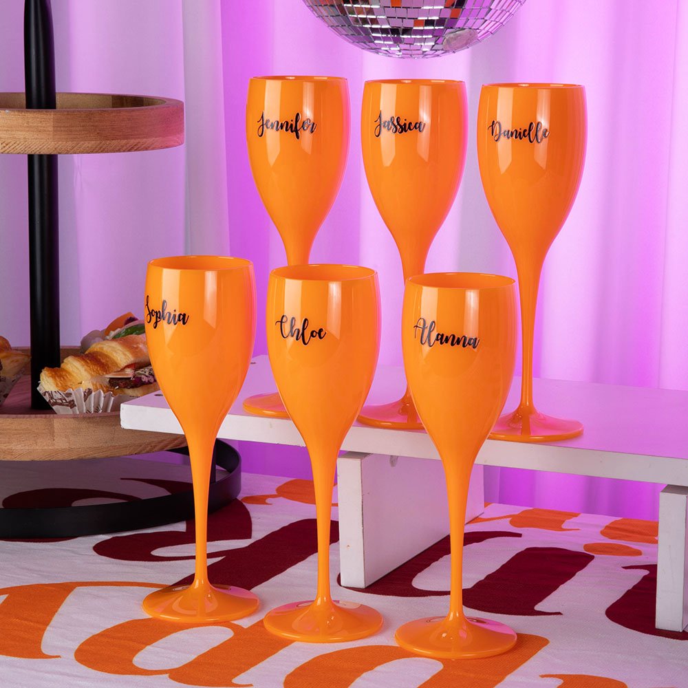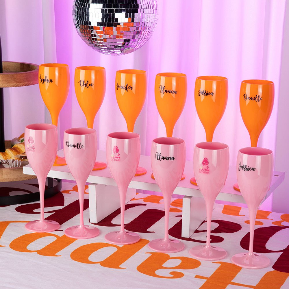 These exquisite champagne champagne flutes combine pink and orange tones to create an impressive, captivating visual appeal. Each champagne flutes allows for customization, giving room for your distinctive insignia or text. It provides an elegant and trendy way to acknowledge your special day or event, transforming an ordinary toast into a personal celebration.