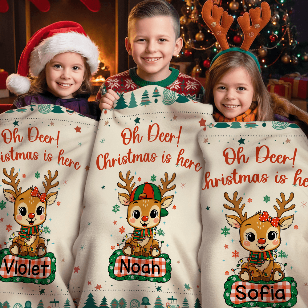 With a focus on a playful Christmas theme, these blankets are printed with adorable cartoon Christmas reindeer, fairy lights, and snowflakes, brimming with festive joy. They can also be customized with your child's name, making each blanket a unique "personal identifier."