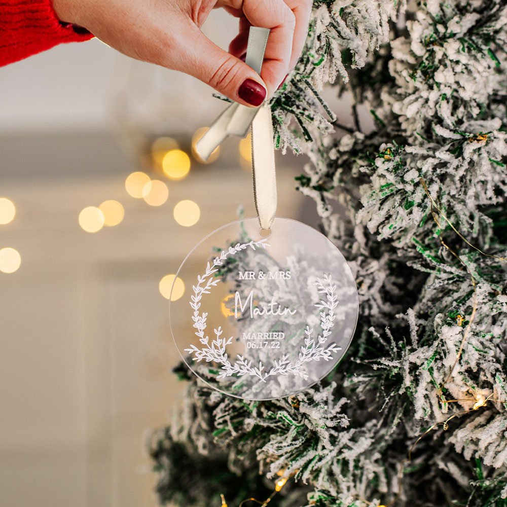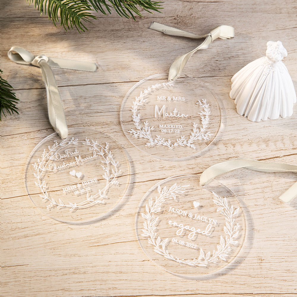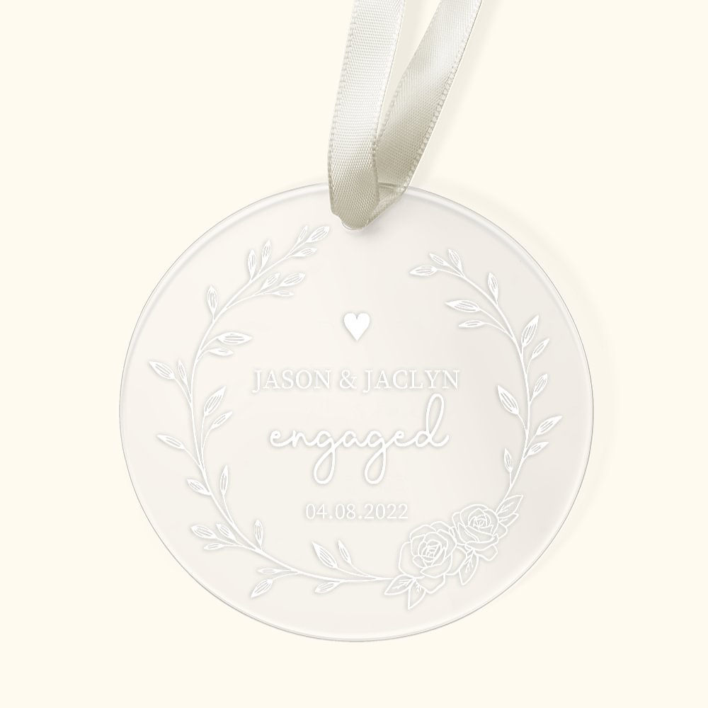 [BEAUTIFUL ORNAMENT]: This Christmas ornament has exquisite patterns, and unique flower and vine elements as a newlyweds ornament Keepsake, or annual couples ornament. Whether you are celebrating your first Christmas married or engaged, this delicate Christmas engaged ornament will preserve your precious memories, and be used as an heirloom recording your love story.