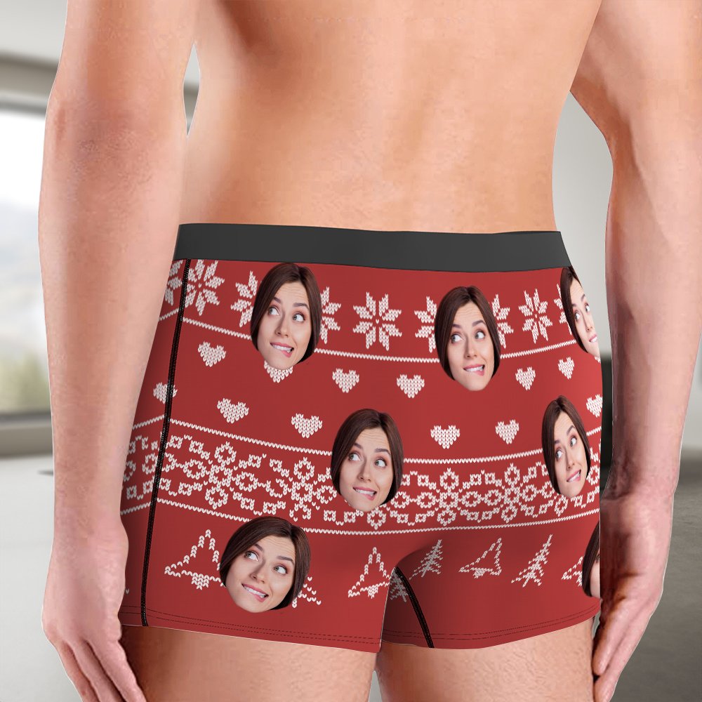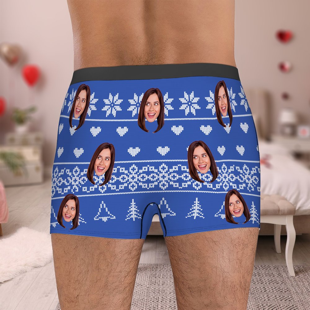 The men's boxer briefs are more than just basic underwear; they are a fashion statement. The design incorporates Personalised elements, allowing you to choose a unique Christmas pattern and upload a facial photo, even adding a name to showcase a one-of-a-kind style.