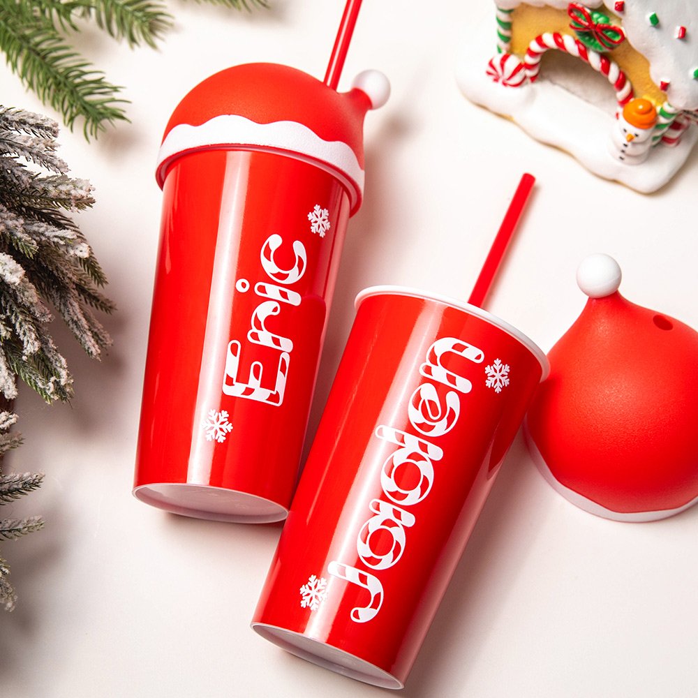 | Feature: | Santa Hat Lid and Straw, Candy Cane Style Name |