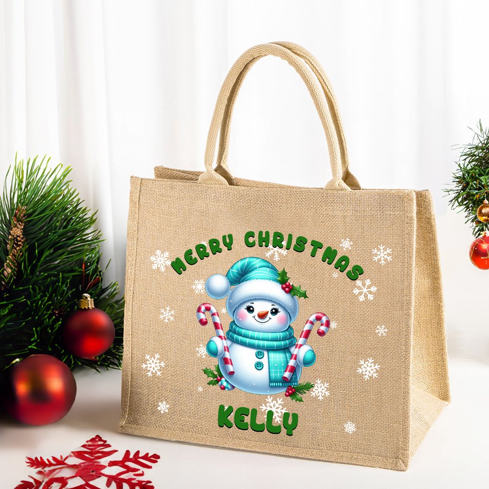 This tote bag features an adorable cartoon Christmas snowman design, adding a festive atmosphere to your celebrations. With bright colors and lively imagery, it allows every user to feel the joy and warmth of the holiday season. The customizable name makes each tote bag one-of-a-kind, ensuring that it serves not only as a beautiful decorative item but also as a heartfelt carrier of warmth and love.