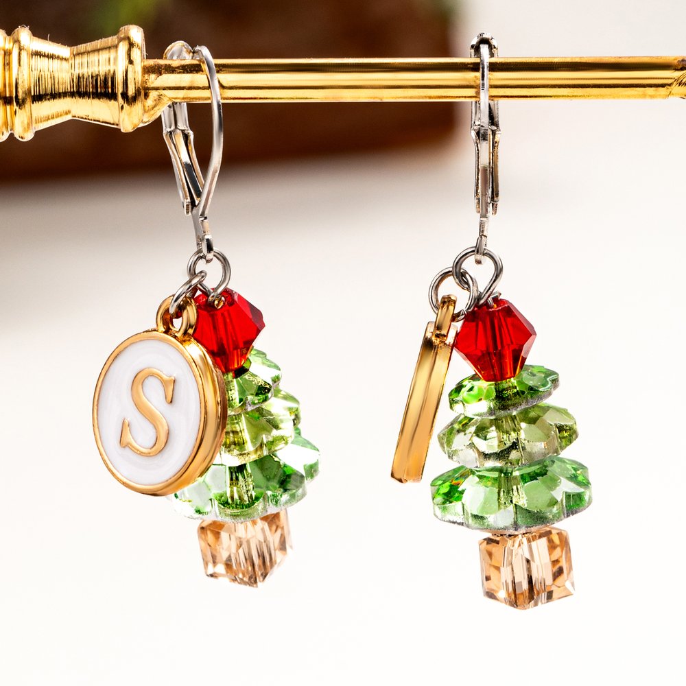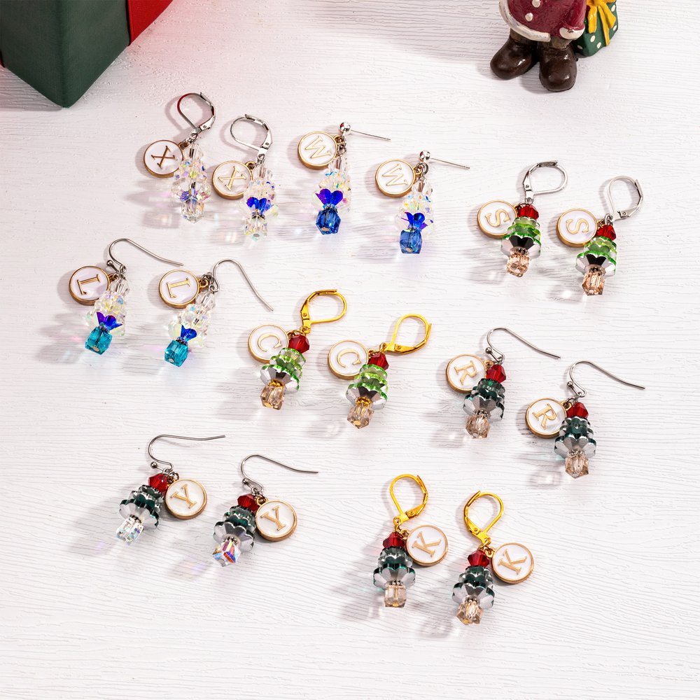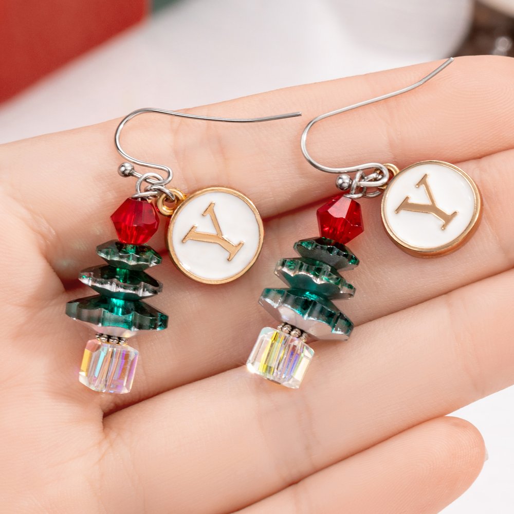 Personalised Christmas Tree Crystal Stud Earrings with Initial Dainty Jewellery Birthday Anniversary Christmas Gift for Women