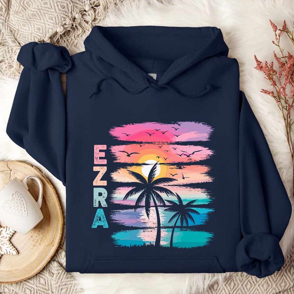 Centreed around customizable names as its standout feature, this collection pairs minimalist aesthetics inspired by tree shadows and beach sunsets with a relaxed, Personalised vibe. Each garment artfully integrates a bespoke name into its design, creating a distinctive signature that celebrates individuality and captures the spirit of vacation.