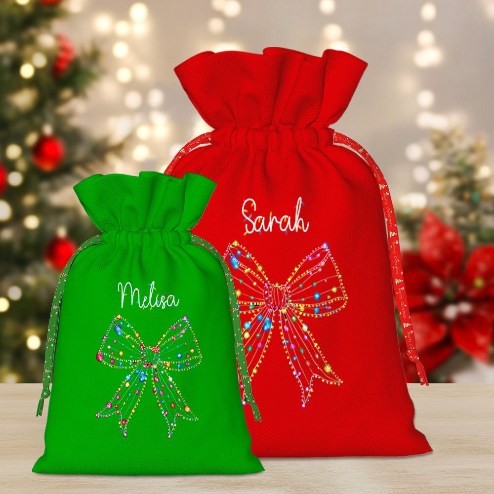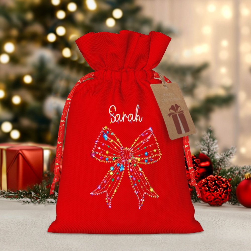 The highlight of this gift bag is the festive Christmas theme, with colorful Christmas lights blended with bows to add a strong festive atmosphere. You can add the recipient's name to make each bag truly unique.