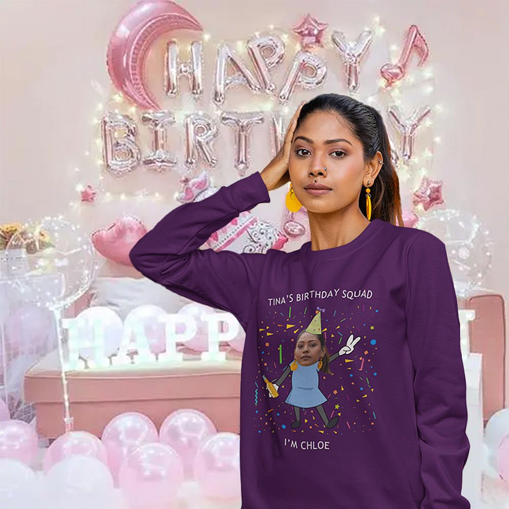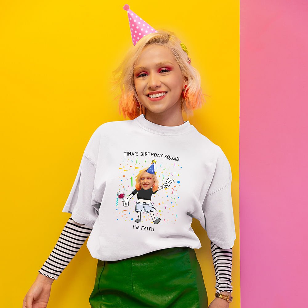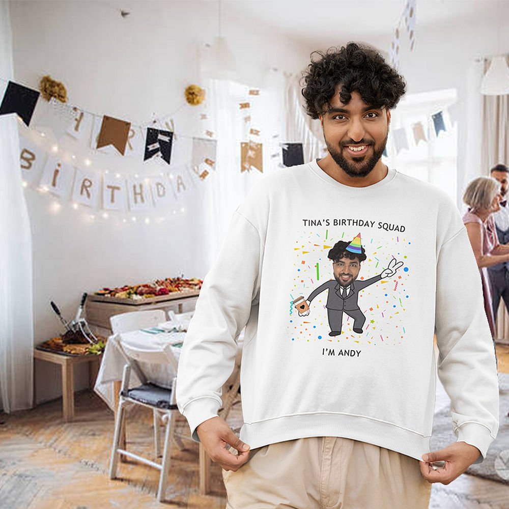 Our sweatshirts and T-shirts feature classic cartoon characters on the front, allowing you to freely customize the personal image of the birthday protagonist, from birthday hats to clothing to the drink in your hand. What's more special is that you can upload photos as avatars to make them more interesting and unique.
