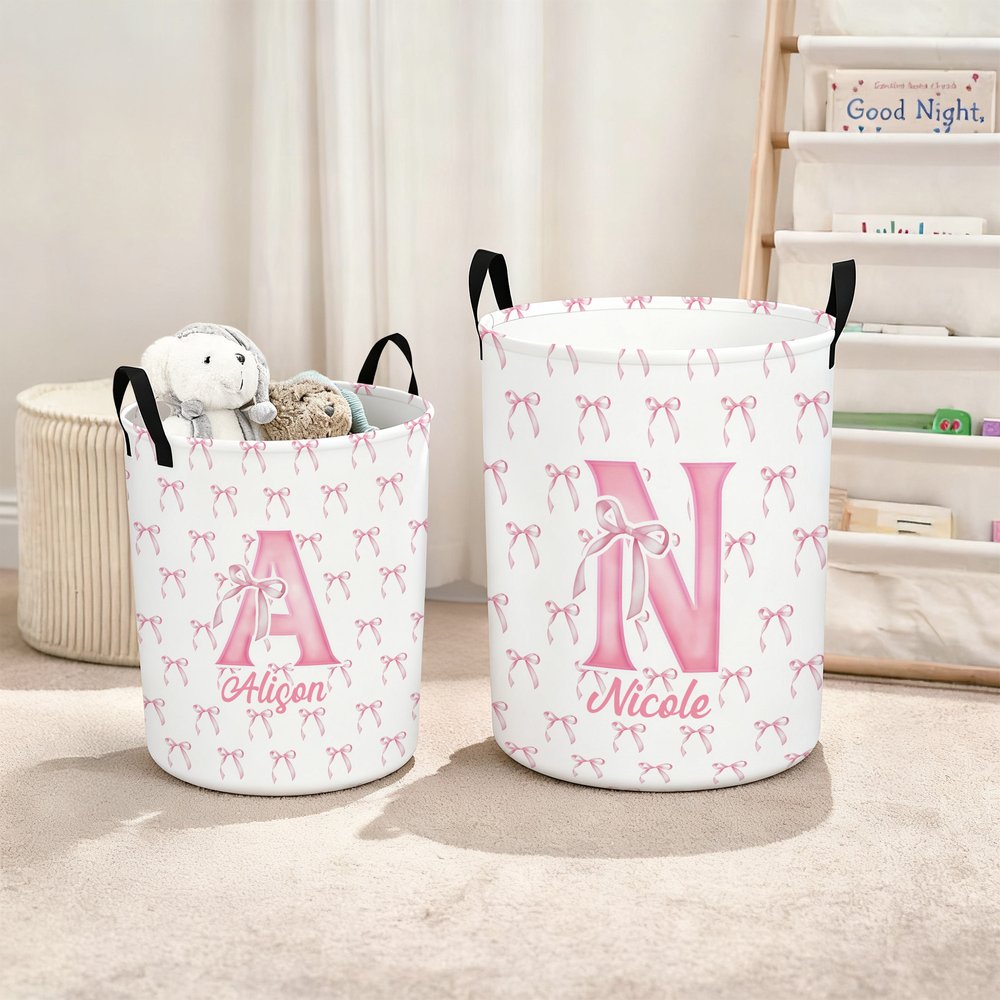 Featuring an adorable bow as its core design element, with customizable initials and names, the overall style is soft, cute, and playful, breaking away from the monotony of traditional storage baskets.