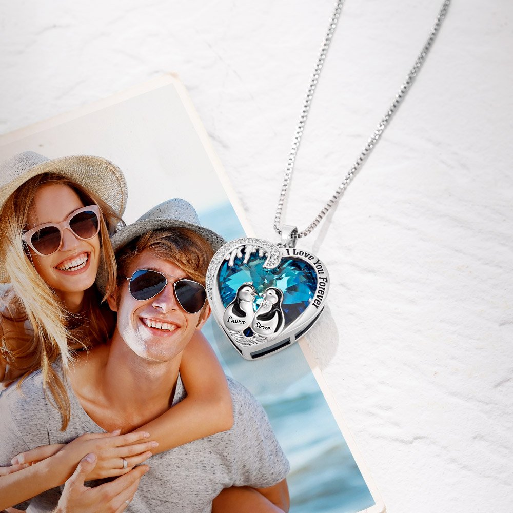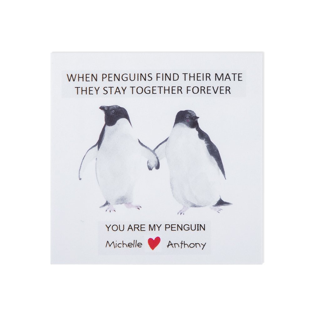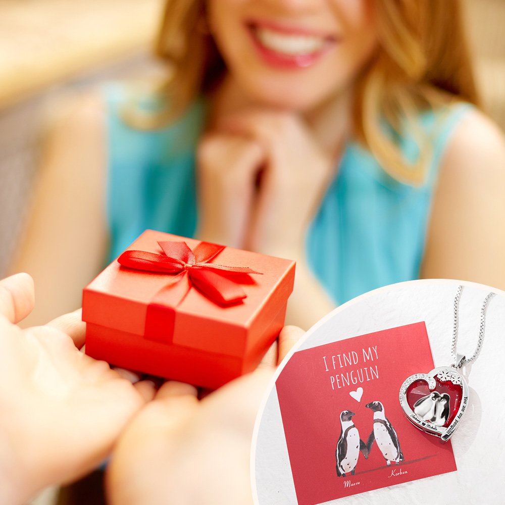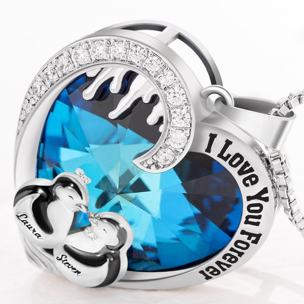 The necklace features two adorable penguins gazing at each other, symbolizing the beauty of love and companionship. The heart-shaped crystal zircon adds a sparkling touch, making it a standout piece for any occasion. You can have both names inscribed, adding a unique touch that transforms this pendant into a treasured memento of your relationship.