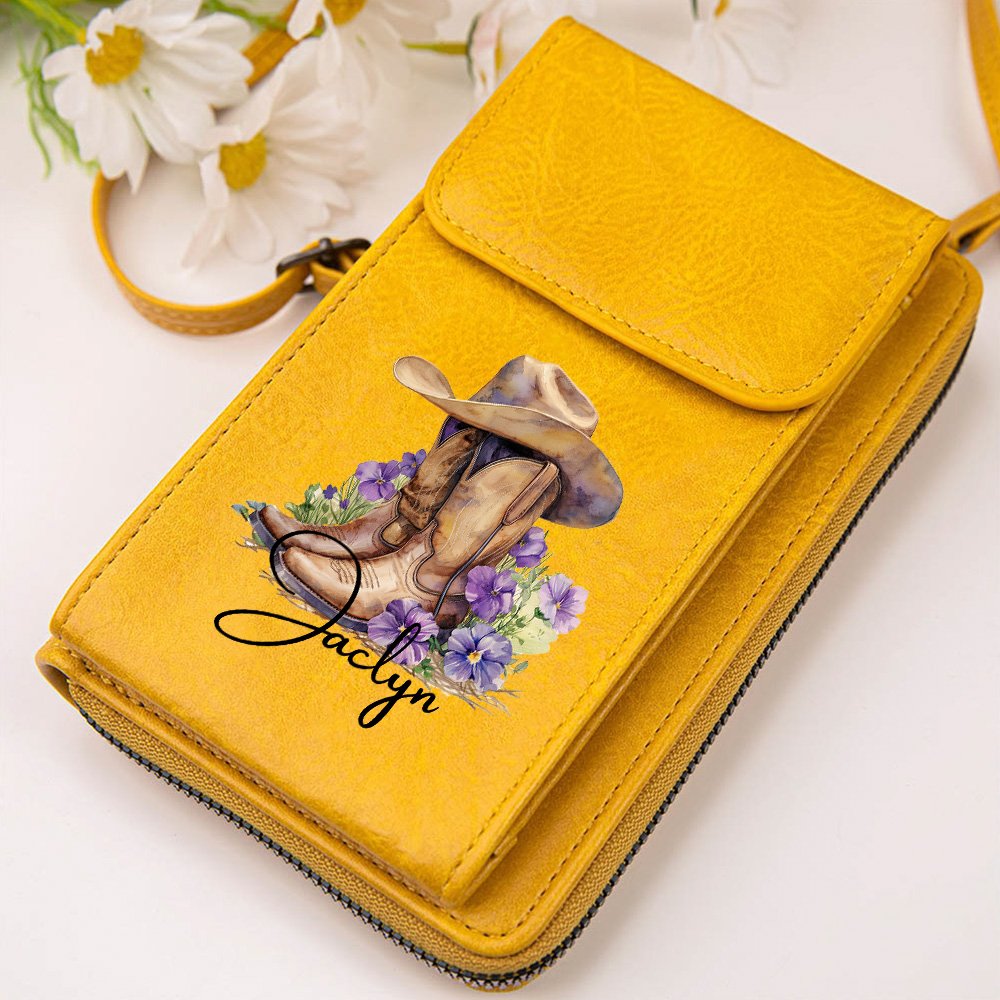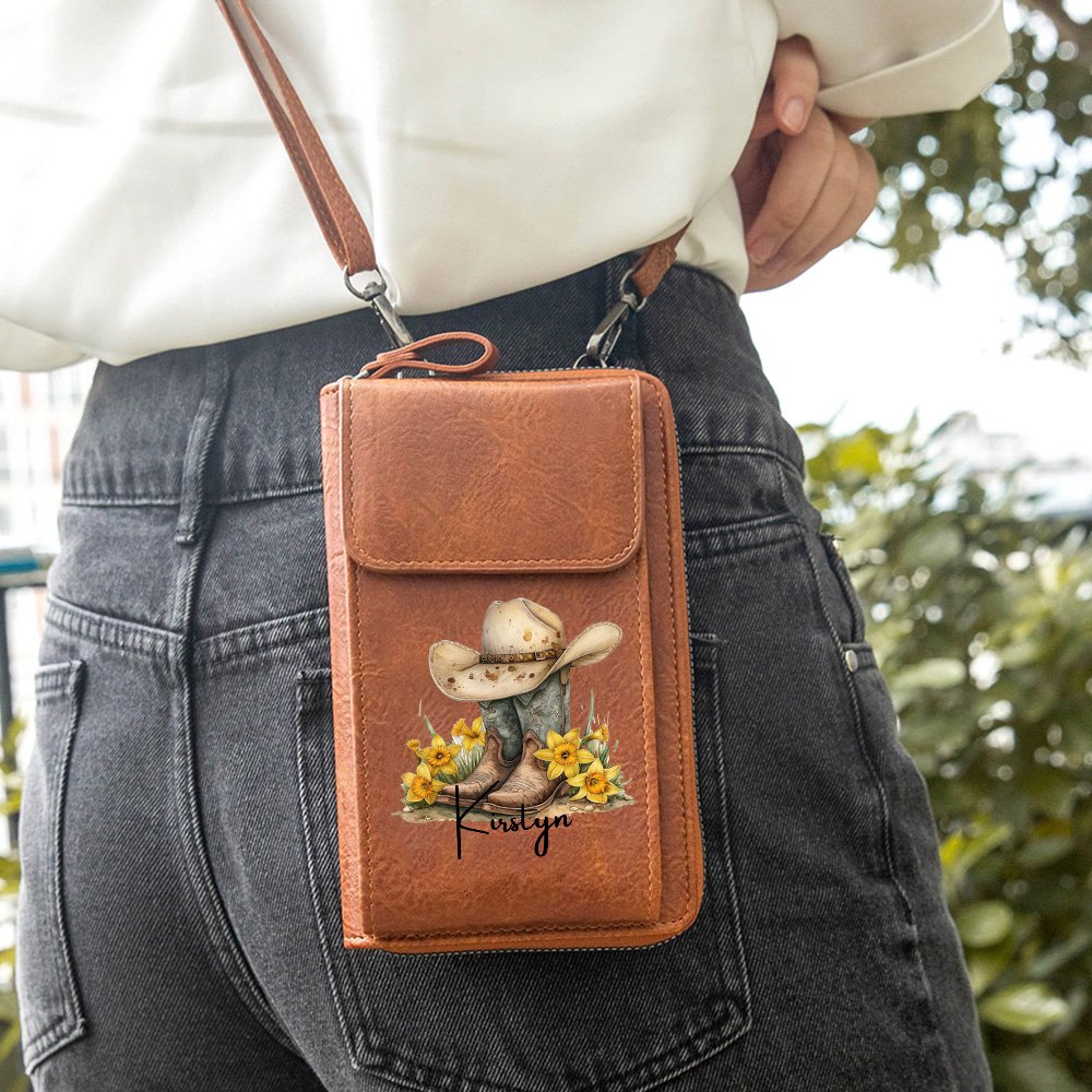 This crossbody wallet is printed with a pair of cowboy boots, and the edge of the boots is surrounded by birth flowers, showing a strong Western style. The name can also be customized on the crossbody wallet, making it a unique and exclusive accessory, which is both fashionable and memorable.