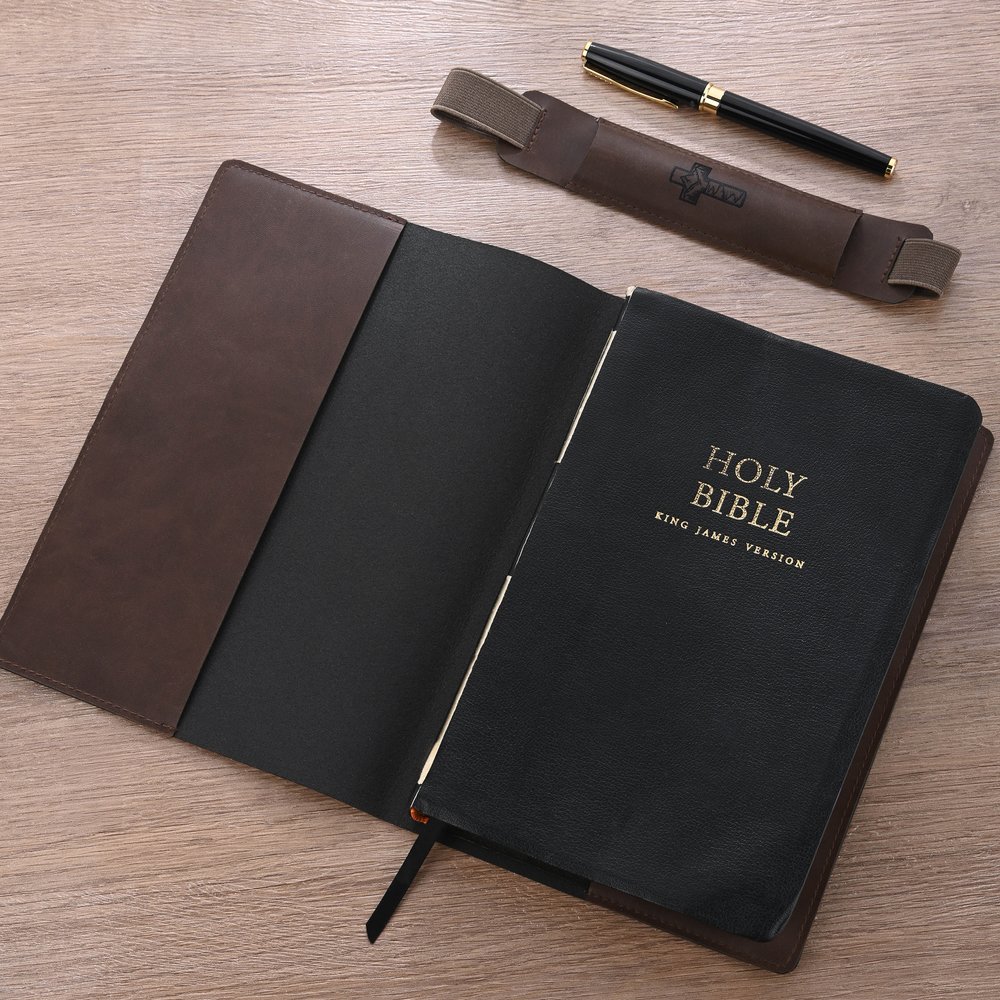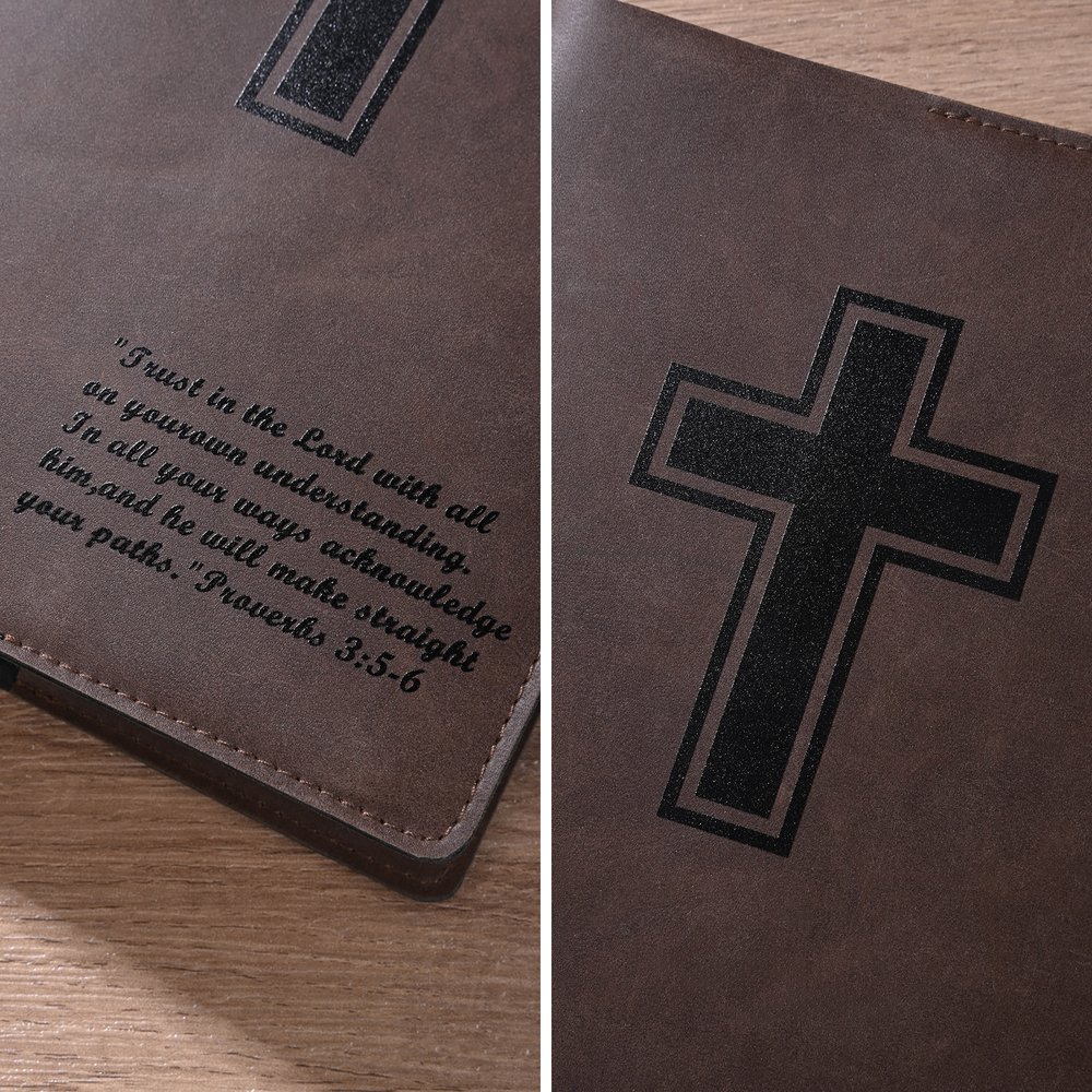 | Feature: | Leather Finish, Durable and Portable, with Pen Holder, Cross Design, Bible Verse Customization |