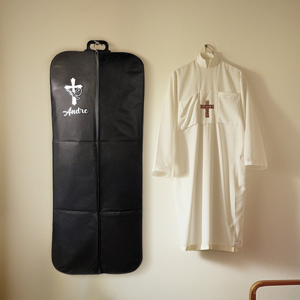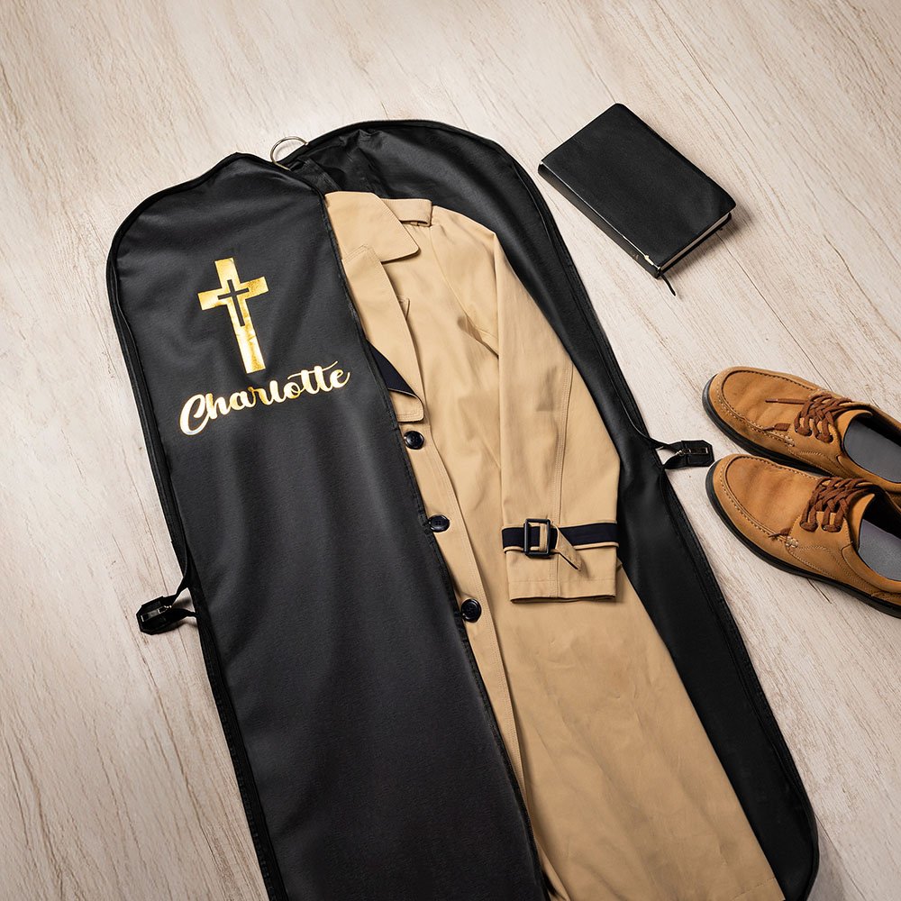 This dust bag features a Christian theme and a cross pattern, and is available in four different patterns. You can also customize your name to add a unique touch to your clothing storage.