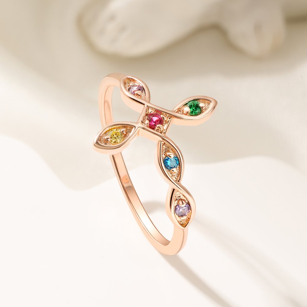 Personalised Dainty Cross Ring with 1-6 Birthstones Anniversary Mother's Day Christmas Gift for Women Family