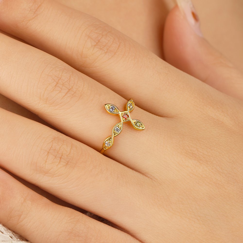 This ring features 1-6 vibrant birthstones representing each family member, creating a deeply personal piece of jewellery. The cross shape design is a beautiful reminder of Jesus' presence in your life. It symbolizes your family’s unique faith, strength, and bond, making it a meaningful and emotional accessory.