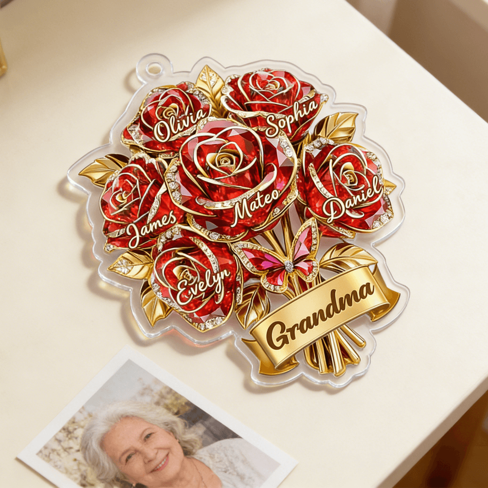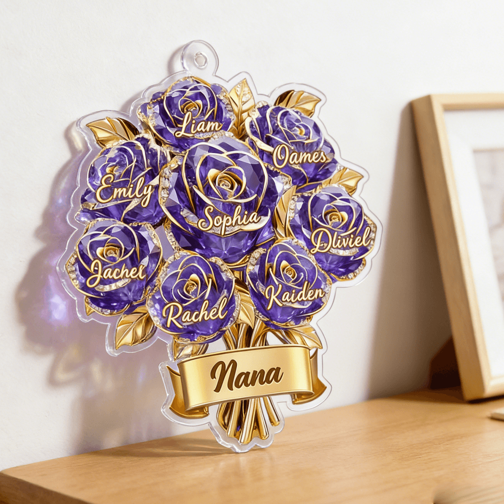 An acrylic ornament that celebrates family warmth, unity, and love—each printed blossom and name representing a unique family member. The ornament makes a thoughtful gift for mothers, grandmothers, and other loved ones on Mother’s Day, birthdays, anniversaries, or family reunions, offering a lasting token of appreciation and shared memories.