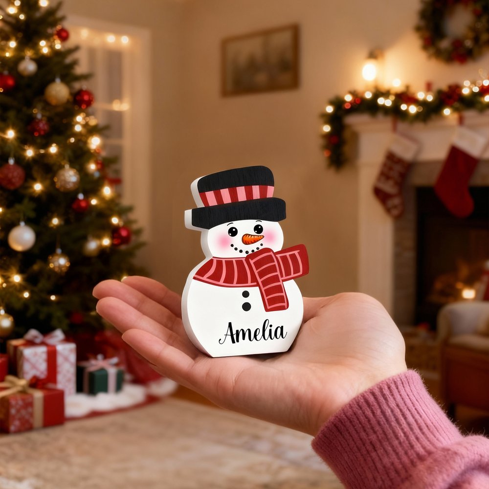 An ideal choice for enhancing holiday ambiance or gifting within families during Christmas. Snowman ornaments Personalised with family members' names strengthen familial bonds, making decorations more meaningful. When gifted to other family members, the custom names demonstrate thoughtful consideration. Aligning with the Christmas theme, it conveys appreciation for family warmth, transforming the ornament into a vessel for conveying affection and holiday blessings.