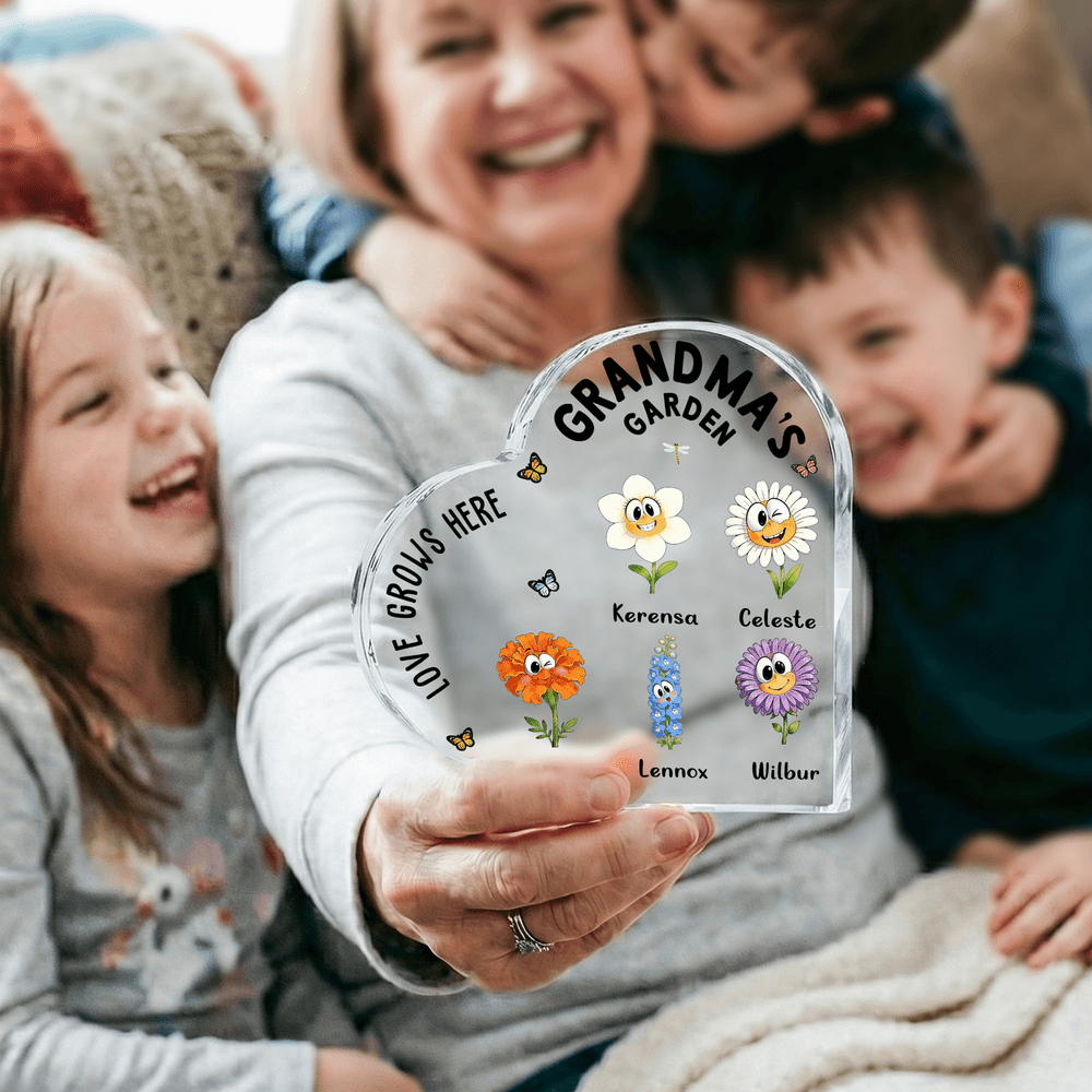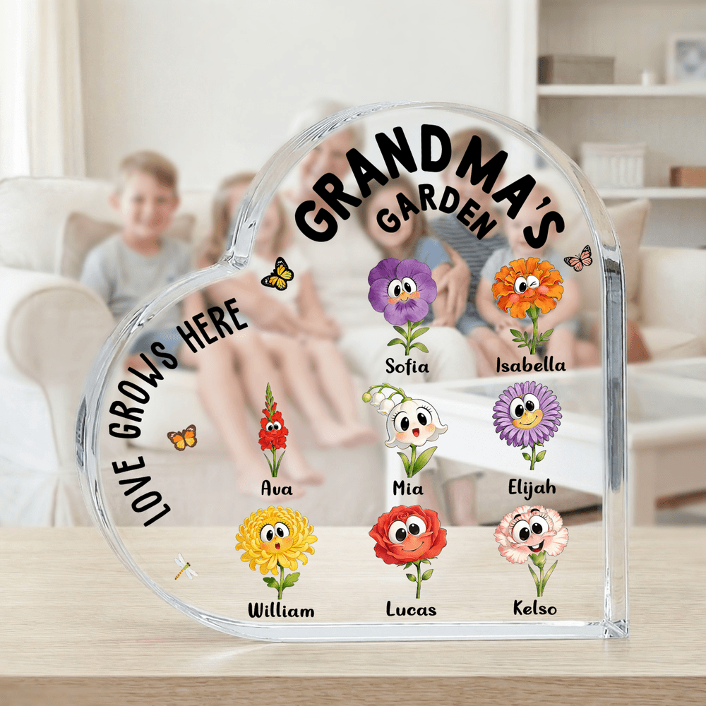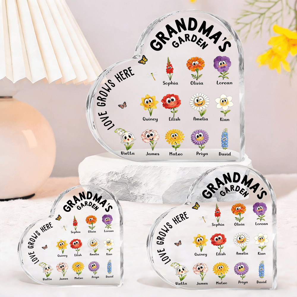 A transparent heart shape paired with a child's birth flower and Personalised name, customizable for up to 16 family members. Exquisite details, combining a sense of ceremony and commemoration.