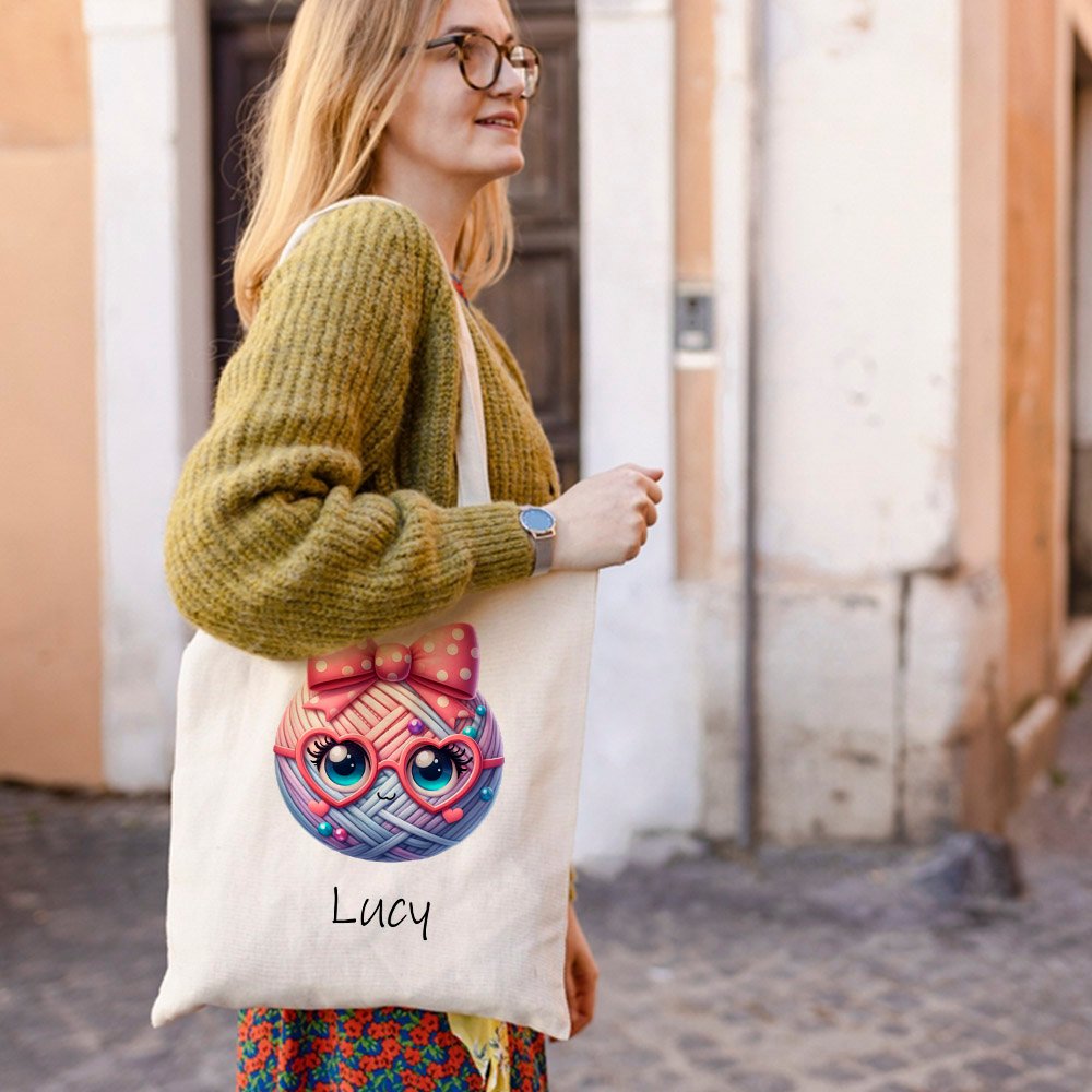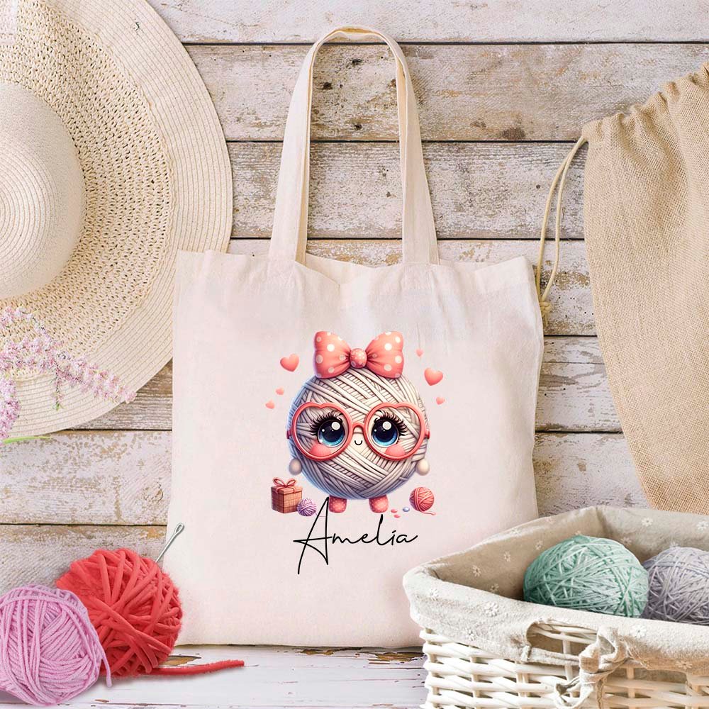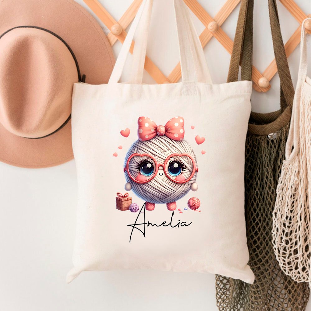 The bag cleverly combines cartoon yarn ball elements with pragmatism. The pink bow and the love decoration are set off, making it more cute and playful. The canvas bag also supports customized names, making it more exclusive.