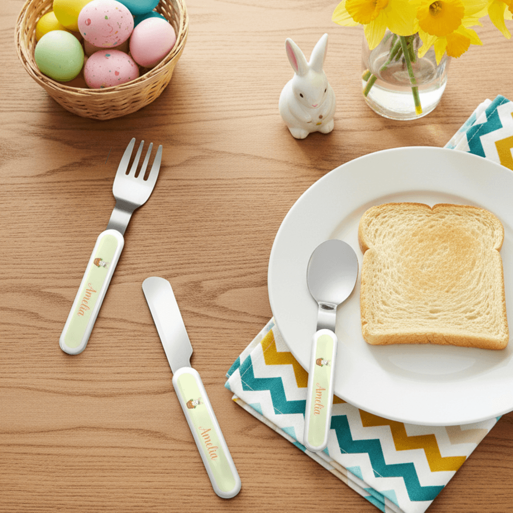 Personalised Cute Bunny Carrot Kid's Fork Spoon Knife 3 Pcs Cutlery Set with Name and Case Back to School Season Birthday Gift for Boys Girls