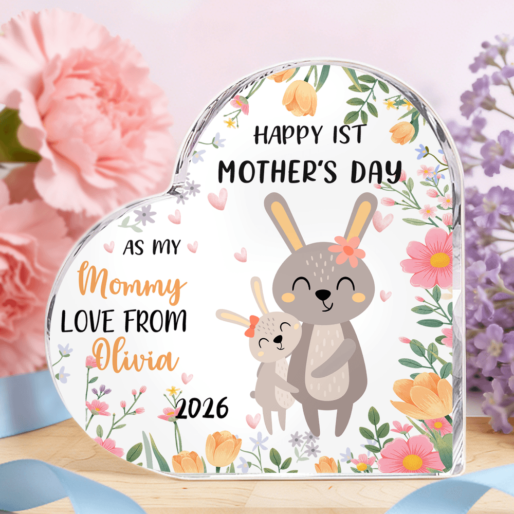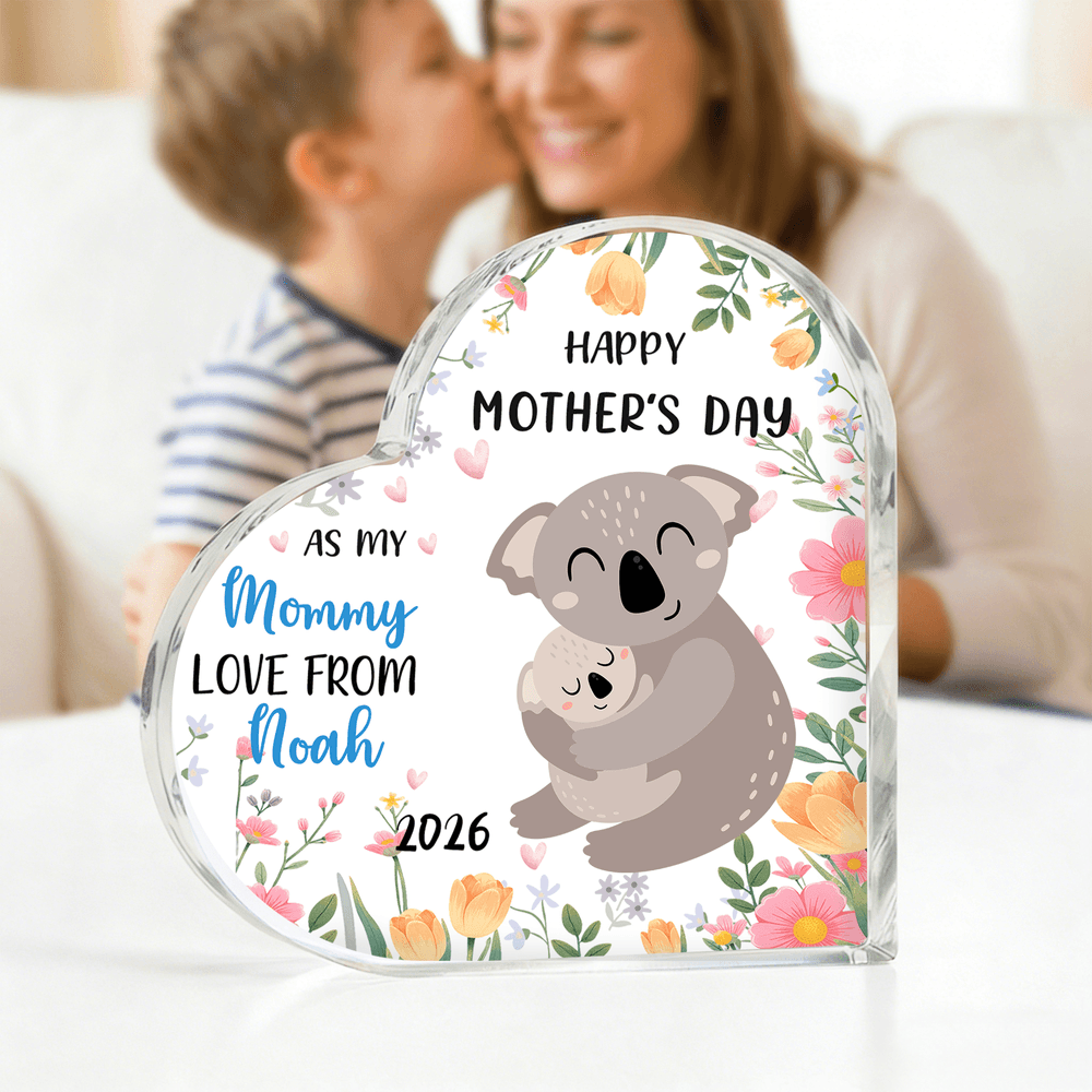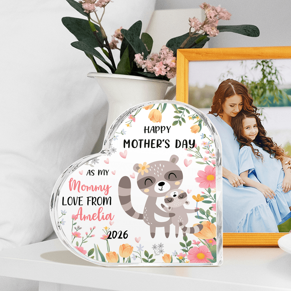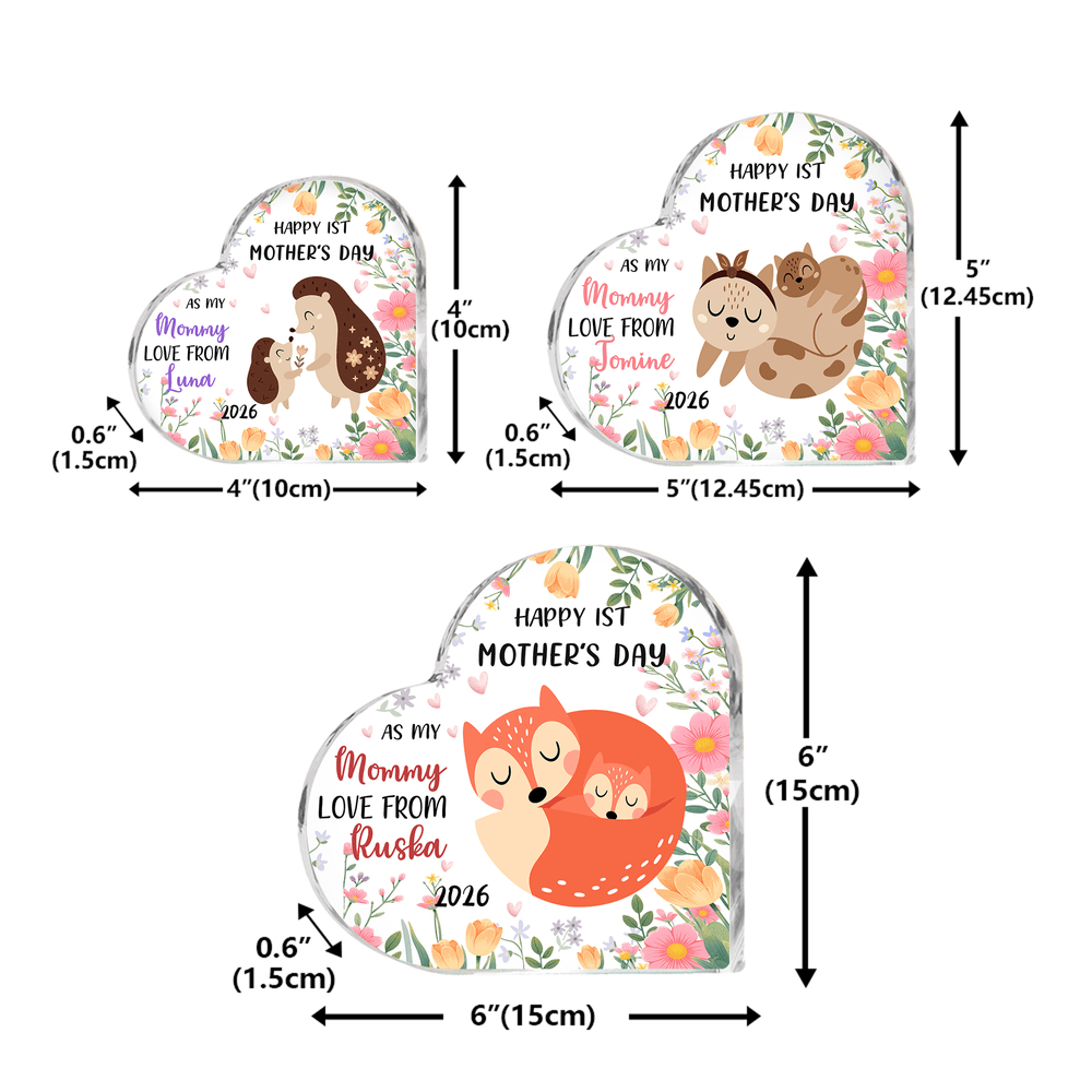 Personalised Cute Cartoon Animal Heart-Shaped Acrylic Plaque with Name and Year Anniversary Mother's Day Gift for New Mom