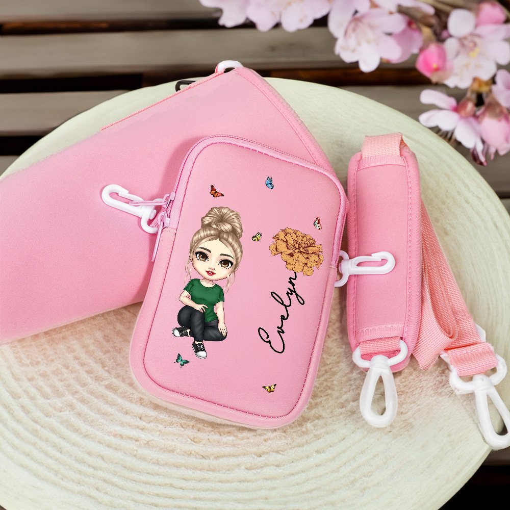 Make a fun experience with this water bottle holder with a custom cartoon combination to create an exclusive image! There's a character for every taste, from cute hairstyles to cool sunglasses. The recipient's name and birth flower can be added, making it an individualized gift. The gift is perfect for girlfriends, friends, moms, daughters, grandmothers, aunts, and more!