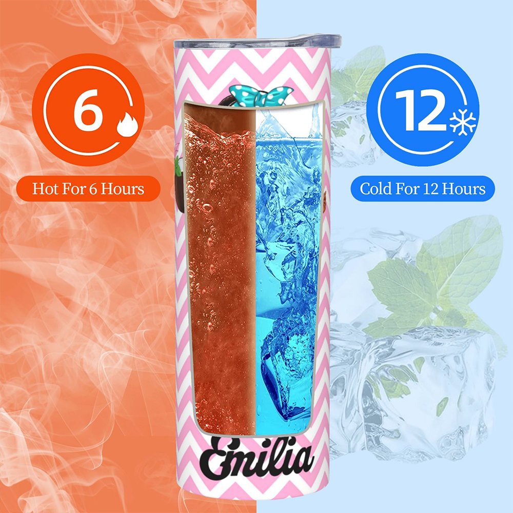 Made from durable stainless steel, this 20oz skinny tumbler offers excellent insulation, keeping beverages hot or cold for hours. Whether you’re sipping iced tea at the beach or enjoying hot coffee, this tumbler is both functional and stylish.