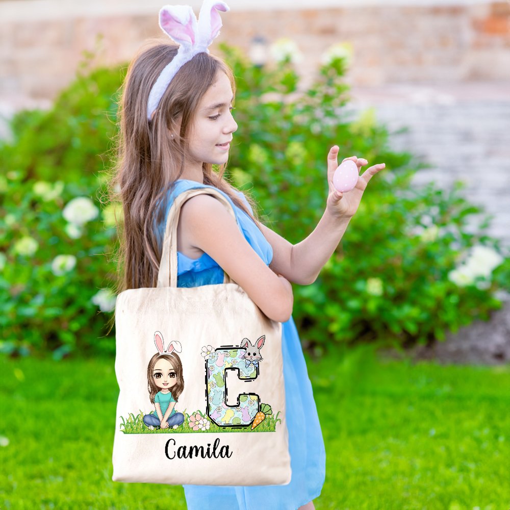 This canvas tote combines beautiful floral lettering with fun Easter cartoon characters to give kids a practical and playful exclusive bag. There are 5 initial styles to choose from, incorporating patterns such as flowers, carrots, bunnies, polka dots, etc., so boys and girls can find their favorite style. Each bag can be added with the child's name and initials to make it a unique gift.