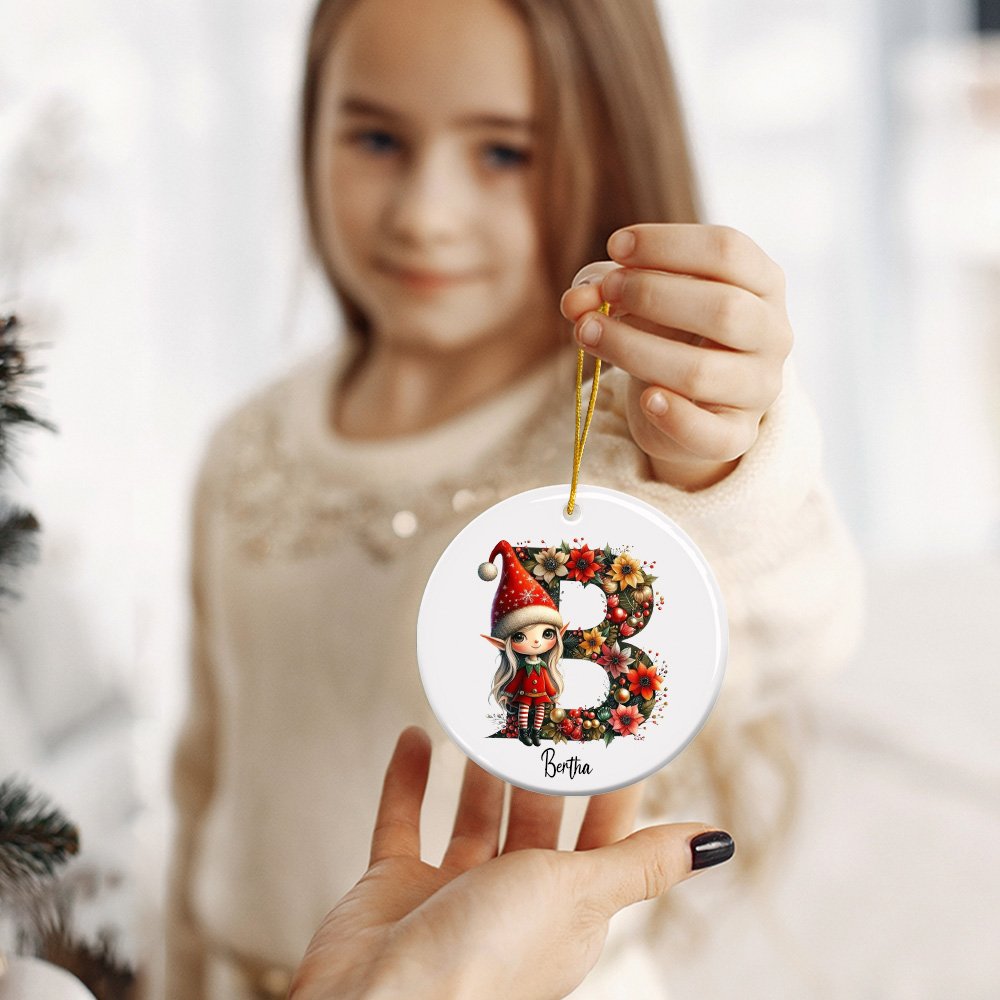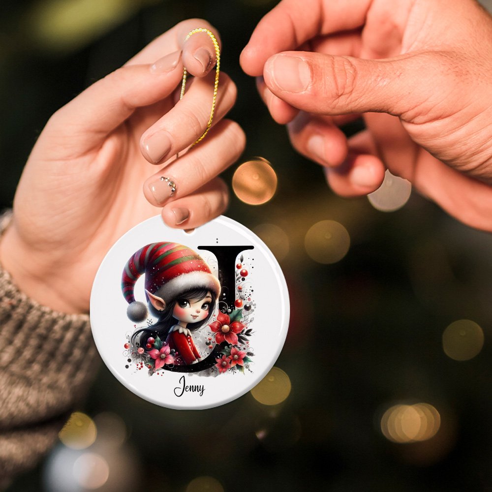 This beautifully crafted ceramic ornament features an adorable Christmas elf floral initial. You can Personalise this ornament with your name, making it a meaningful representation of the holiday season.