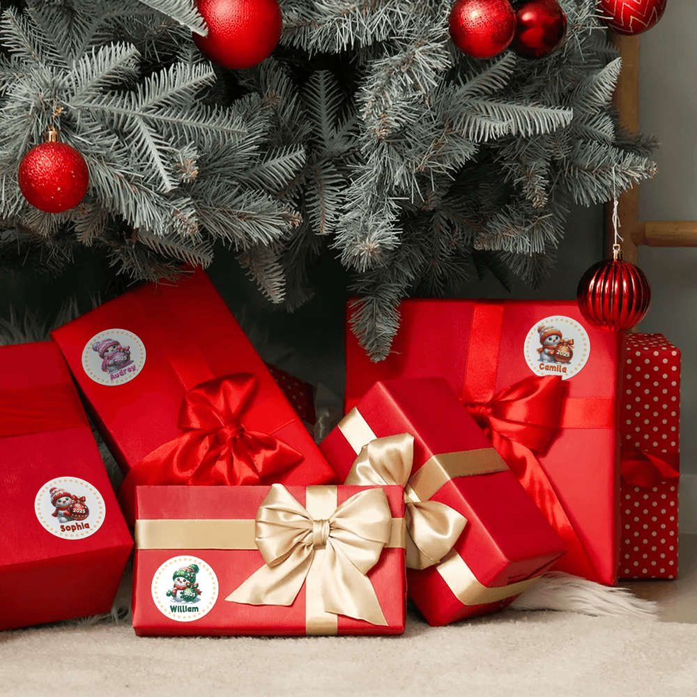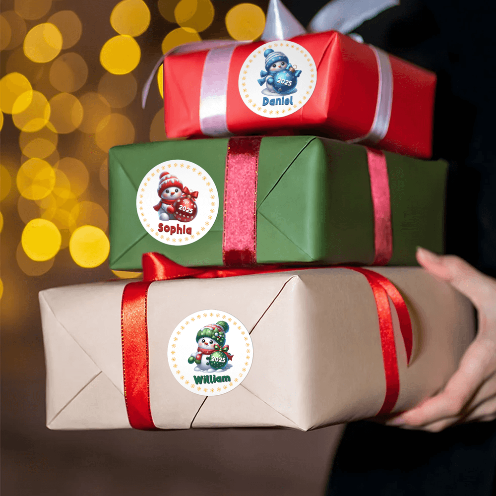 Personalised Cute Christmas Snowman Stickers Labels with Name and Year DIY Gift Decor Christmas Party Favors for Family Kids Friends