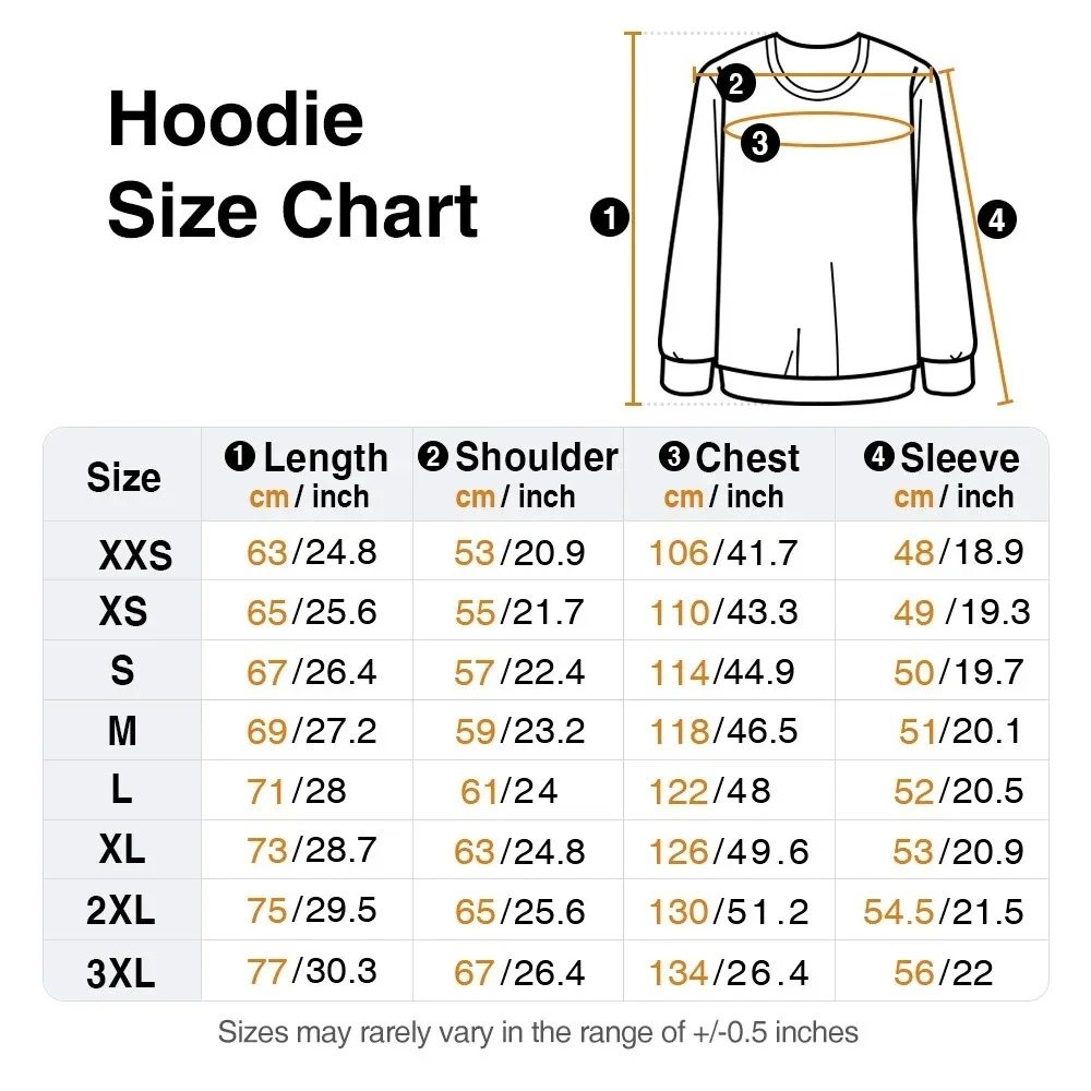 | Measurement: | T-shirt - XXS, XS, S, M, L, XL, 2XL, 3XL, 4XL, 5XL Sweatshirt - XS, S, M, L, XL, 2XL, 3XL |