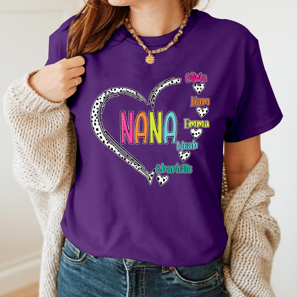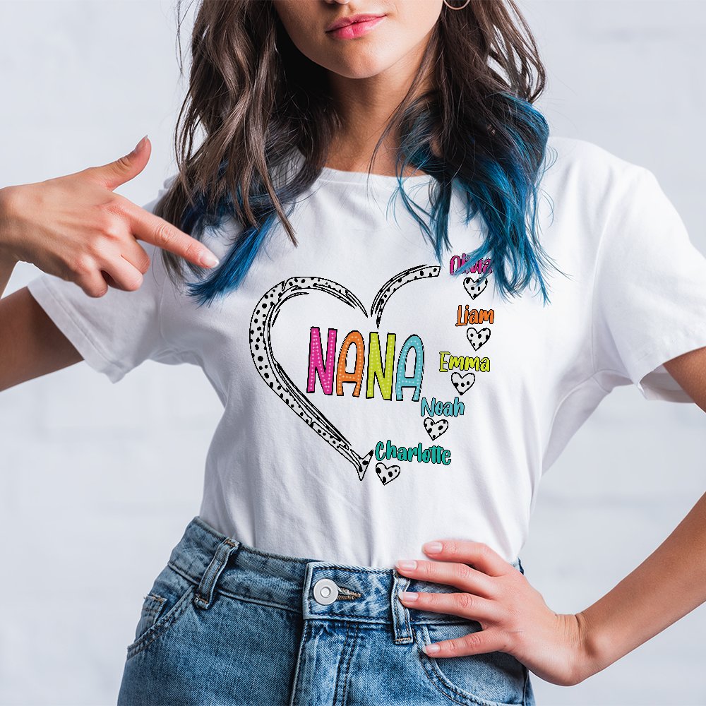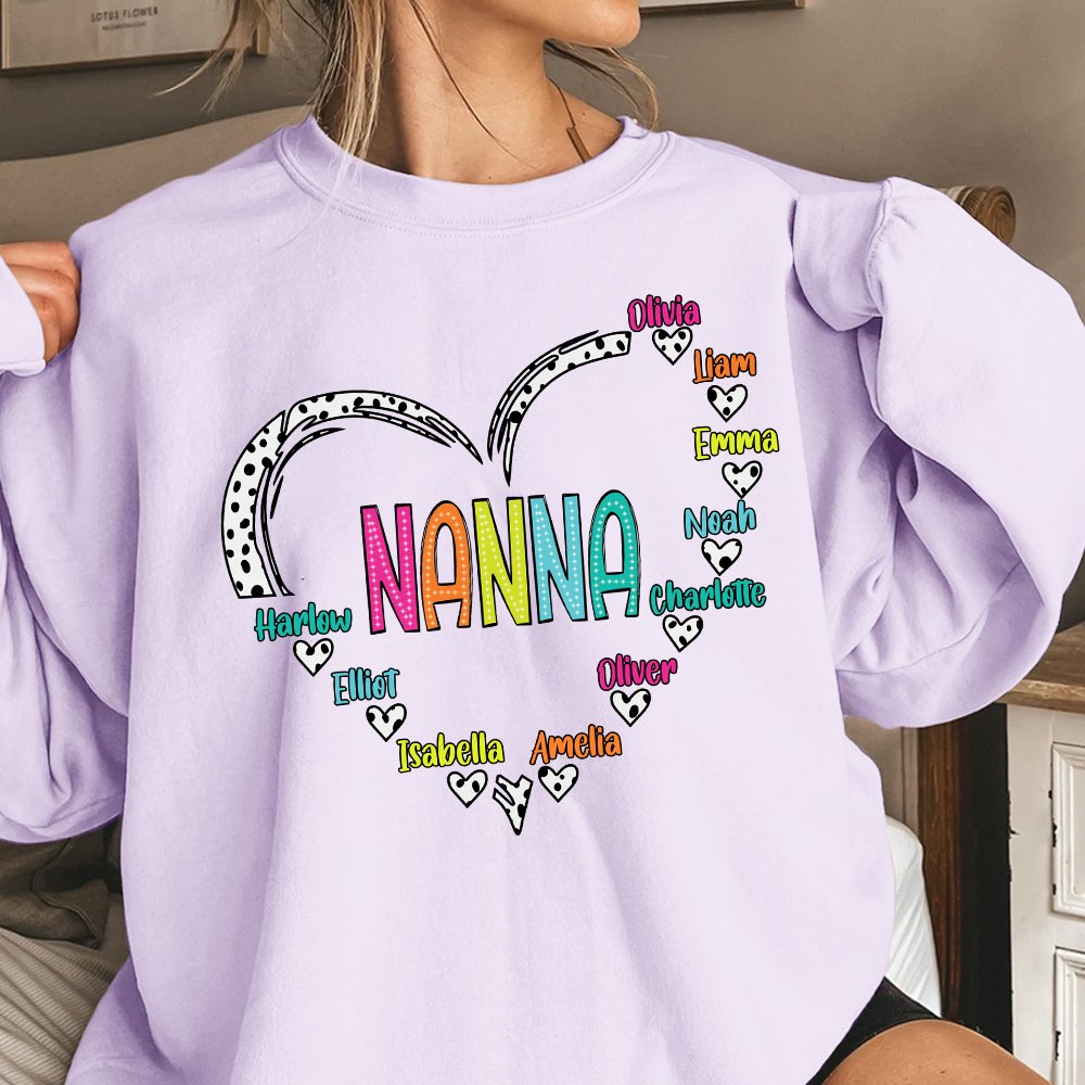 These Dalmatian spotted heart-shaped clothes, together with the child's name, form a heart-shaped pattern, which means the warmth and intimacy of the family. The heart-shaped design can hold up to 12 names, with the option of a custom title in the center, creating a precious keepsake that celebrates the unique connections between generations.